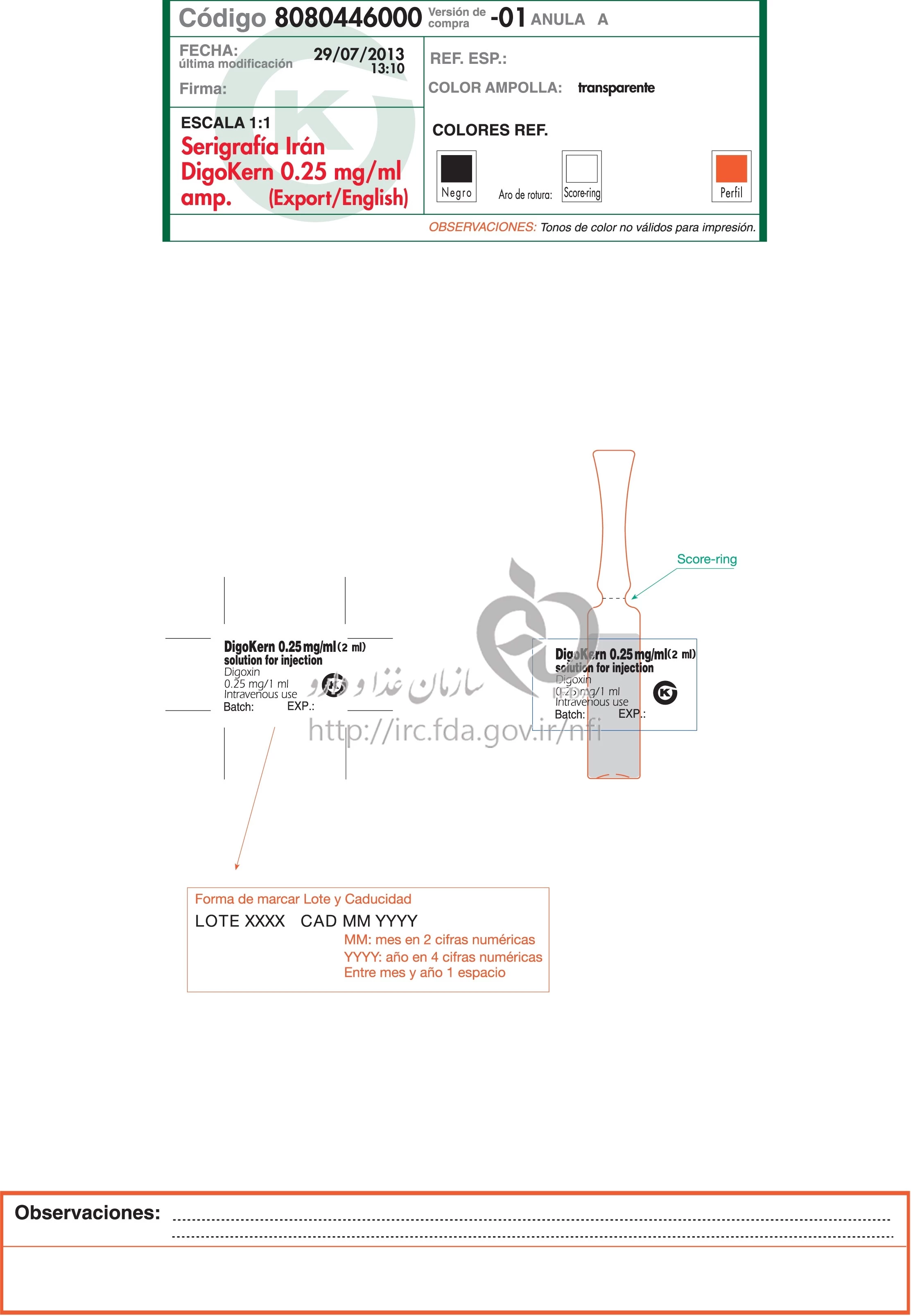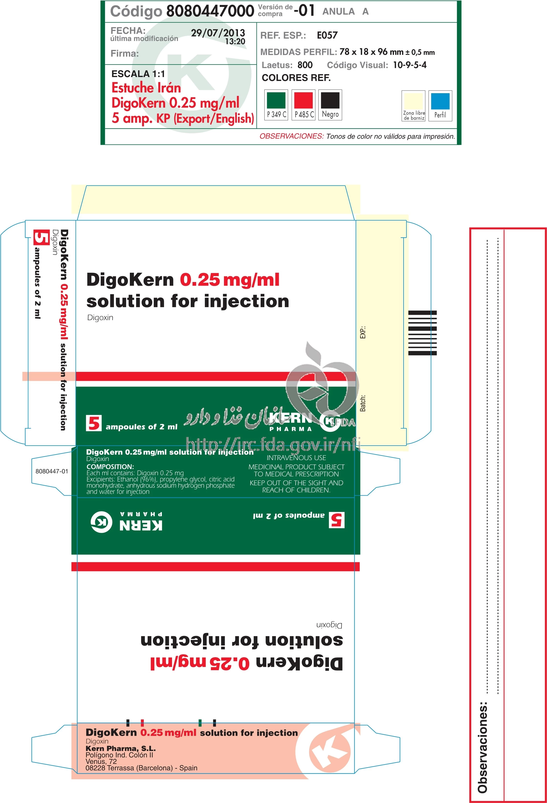 دکترها دیگوکرن تزریقی پرنترال 0.25 mg/1mL 2MILLILITER