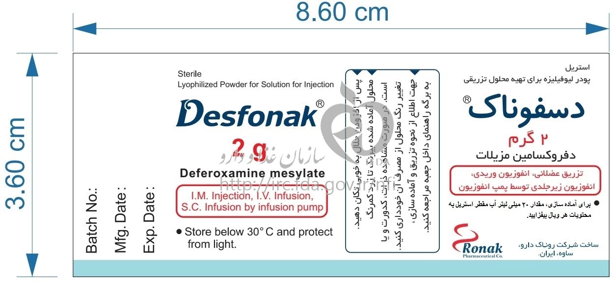 دسفوناک پودر لیوفیلیزه سوسپانسیون تزریقی پرنترال 2 g