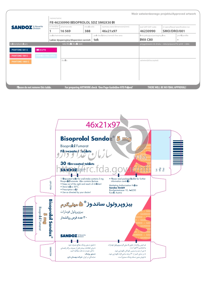 بیزوپرولول ساندوز قرص خوراکی 5 mg