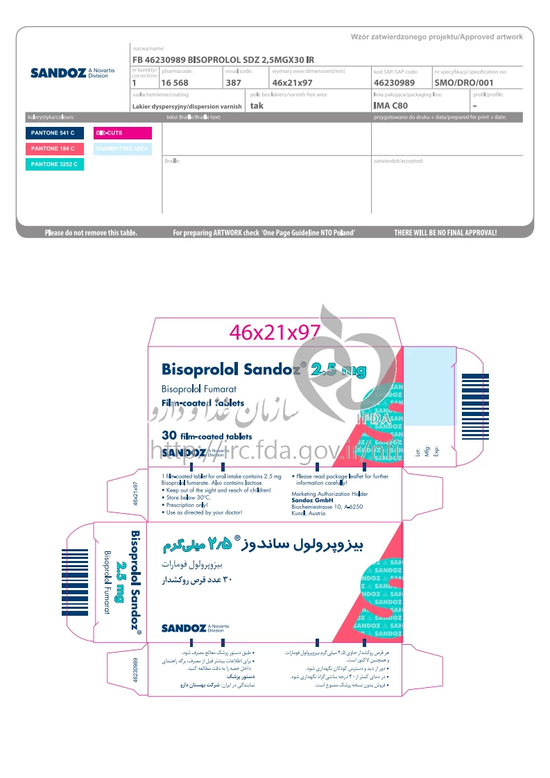 بیزوپرولول ساندوز قرص خوراکی 2.5 mg