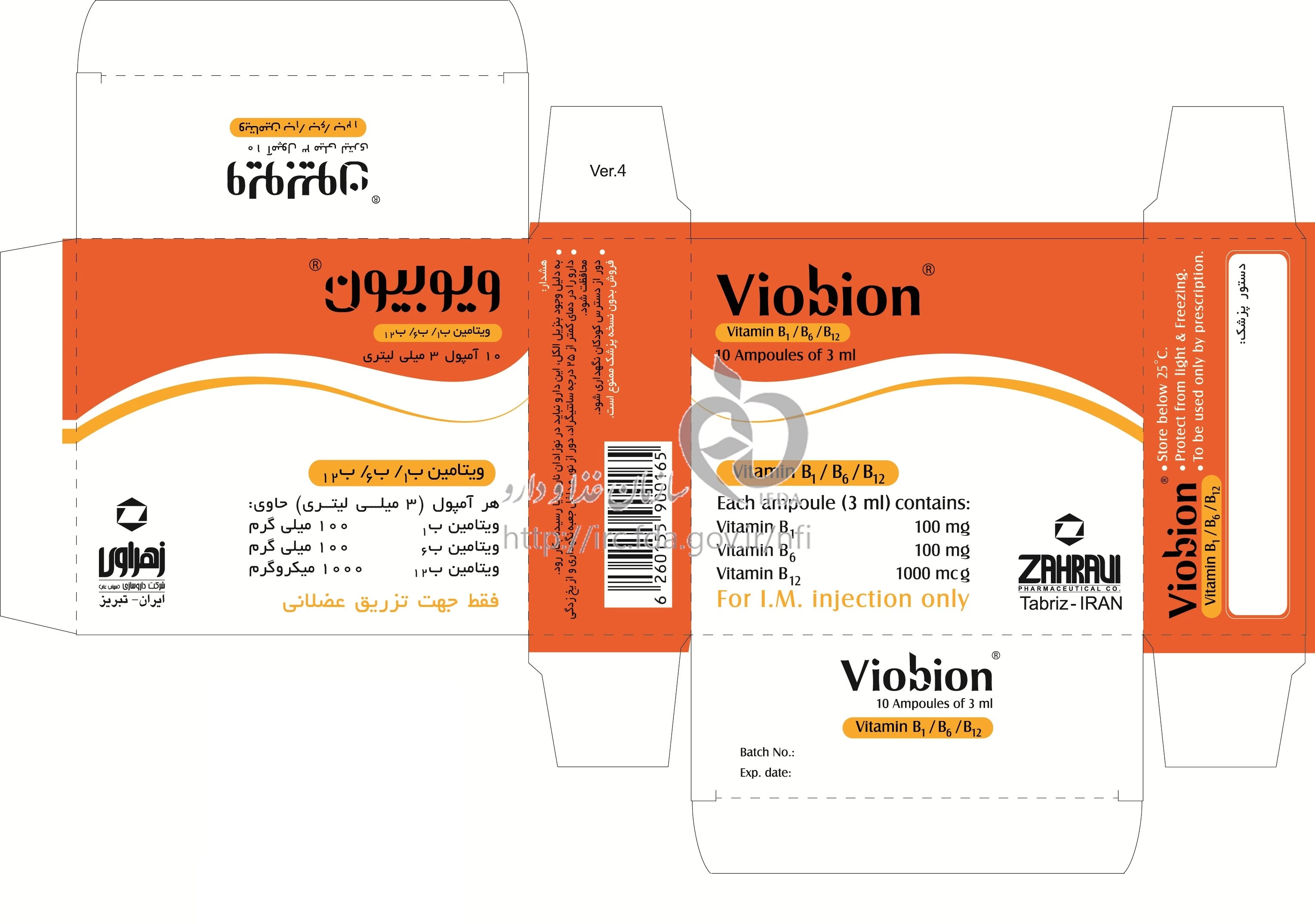 ویوبیون تزریقی پرنترال 100 mg/100 mg/1000 ug/3mL