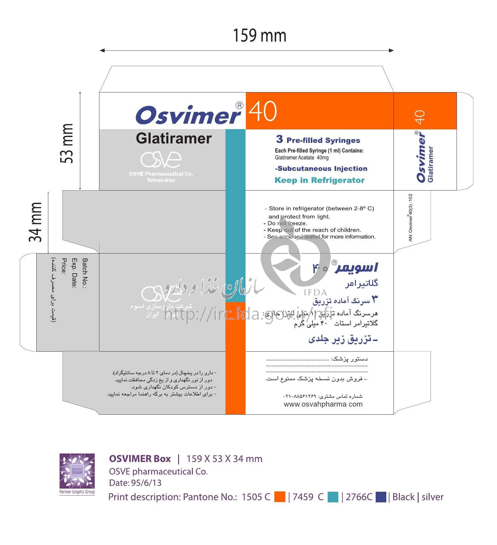 اسویمر محلول تزریقی پرنترال 40 mg/1mL