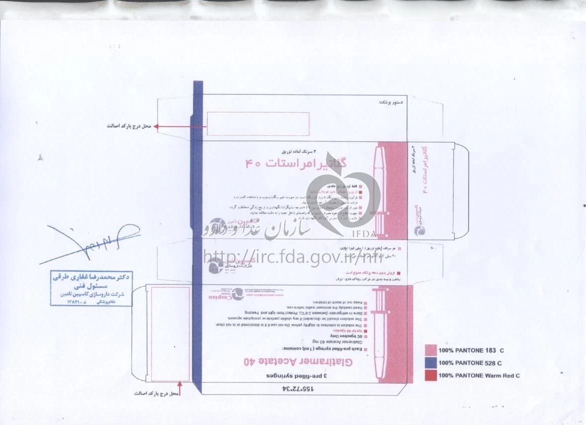 GLATIRAMER ACETATE INJECTION, SOLUTION PARENTERAL 40 mg/1mL یک داروی مورد استفاده در درمان پلکسیکولهو اسکلروز (MS) است. این دارو به اندازهی کافی به سلولهای المنتی و سیستم ایمنی بدن کمک میکند تا از تخریب پوسته نخاعی جلوگیری کند. همچنین، با کاهش تعداد تهاجم های سل مغز پاسخ ایمنی بدن را کنترل میکند و به جلوگیری از تشکیل لزیماتی پرداخته است. این دارو برای کنترل علائم و نشانه های اولیه پلکسیکولهو اسکلروز در بیماران بالای 18 سال مورد استفاده قرار میگیرد. معمولاً نوار سالم عصبی و مهاربند سینه به دلیل آسیب نخاعی در برگیرندهی چندین عضو بدن، در صورت استفاده موفقیتآمیز از این دارو، میتوانند بهبود یابند. این دارو به صورت زیر پوستی تزریق میشود و رعایت دستورات پزشک خود برای مصرف و دوز دقیق بسیار مهم است. درمان با این دارو معمولاً شامل یک تزریق روزانه در طول 6 ماه است که در فواصل مشخصه ای صورت میگردد. در مواردی که دوز تزریق شده برای شما بیش از حد کافی باشد، ممکن است برآمدهای جانبی پیش آید که به از دست دادن وزن، خستگی بیشتر، سردردهای شدید و شب های بی خوابی مجبور میشوید که دوز خود را کاهش دهید. بهترین کار این است که همیشه با پزشک خود در ارتباط باشید و هماهنگی لازم را انجام دهید.