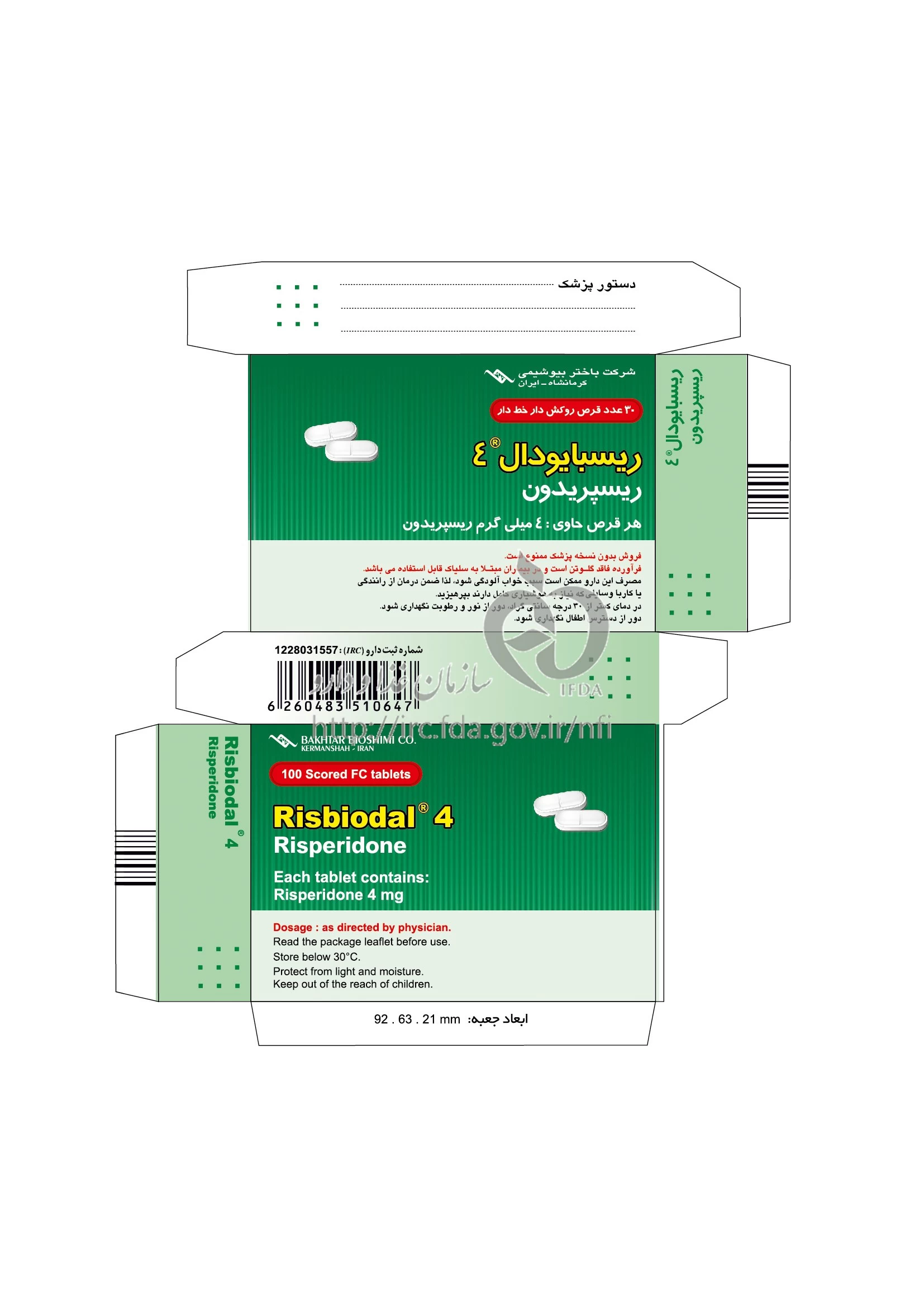 موارد مصرف ریسبایودال قرص خوراکی 4 mg