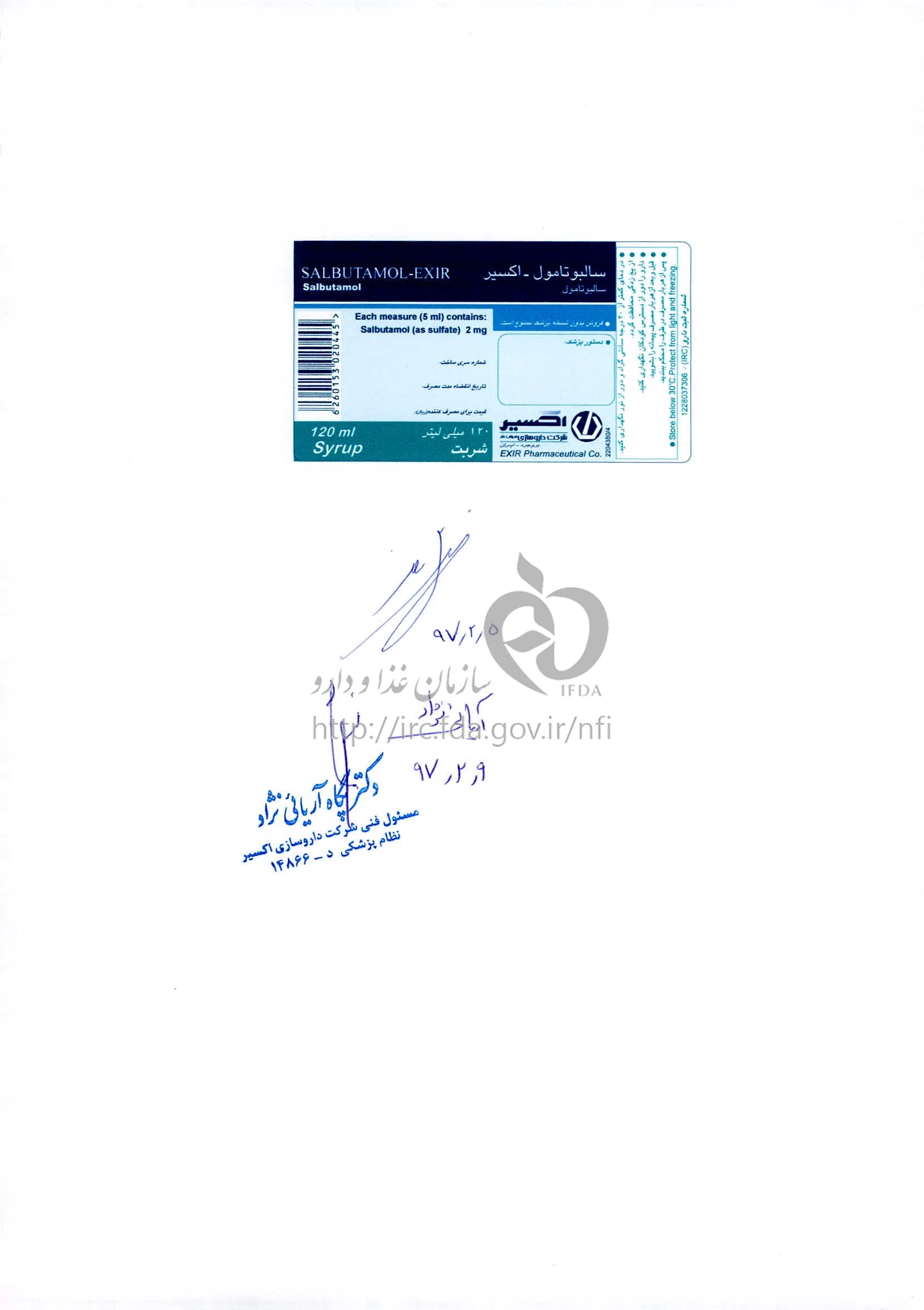 سالبوتامول - اکسیر شربت خوراکی 2 mg/5mL 120MILLILITER