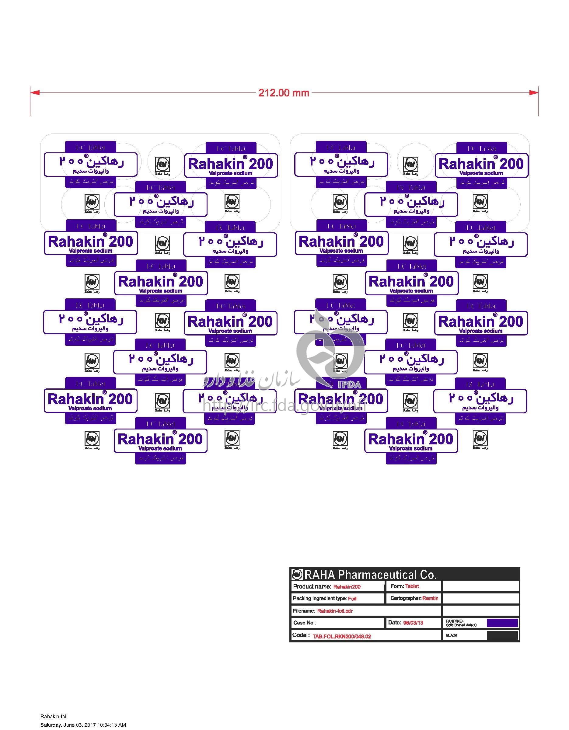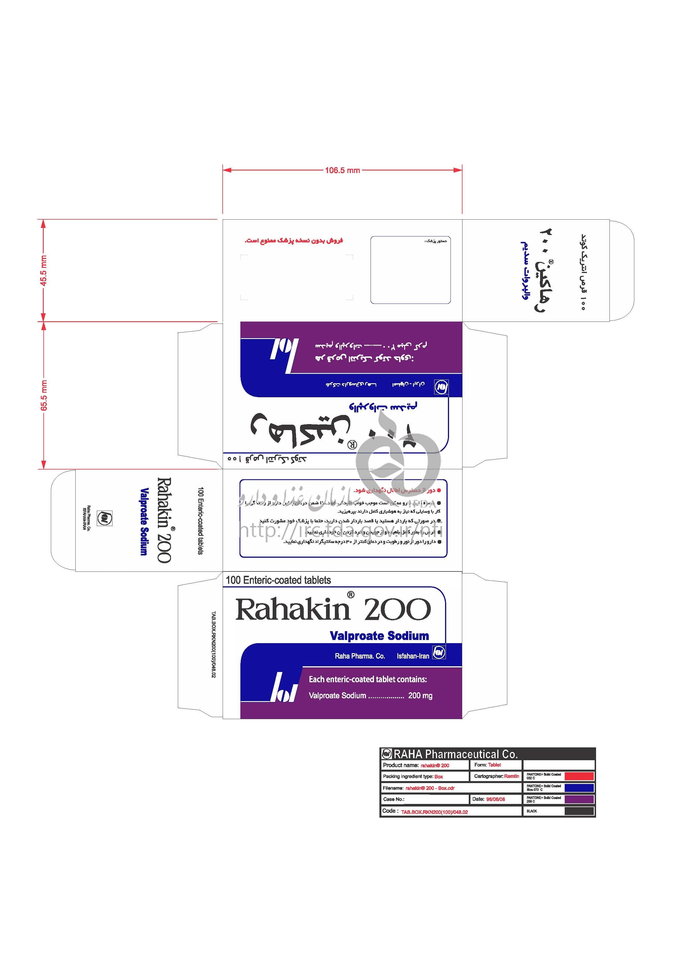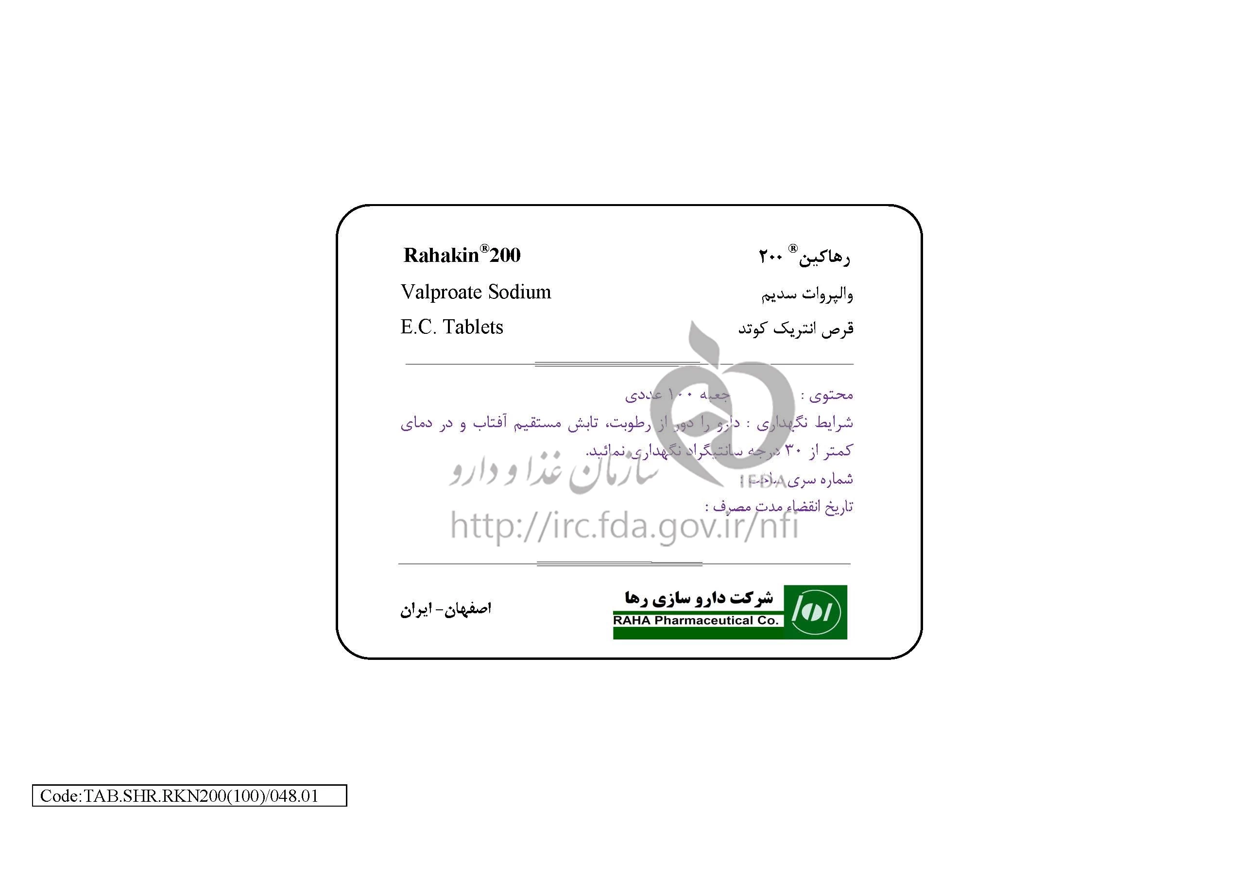 رهاکین قرص انتریک کوتد خوراکی 200 mg