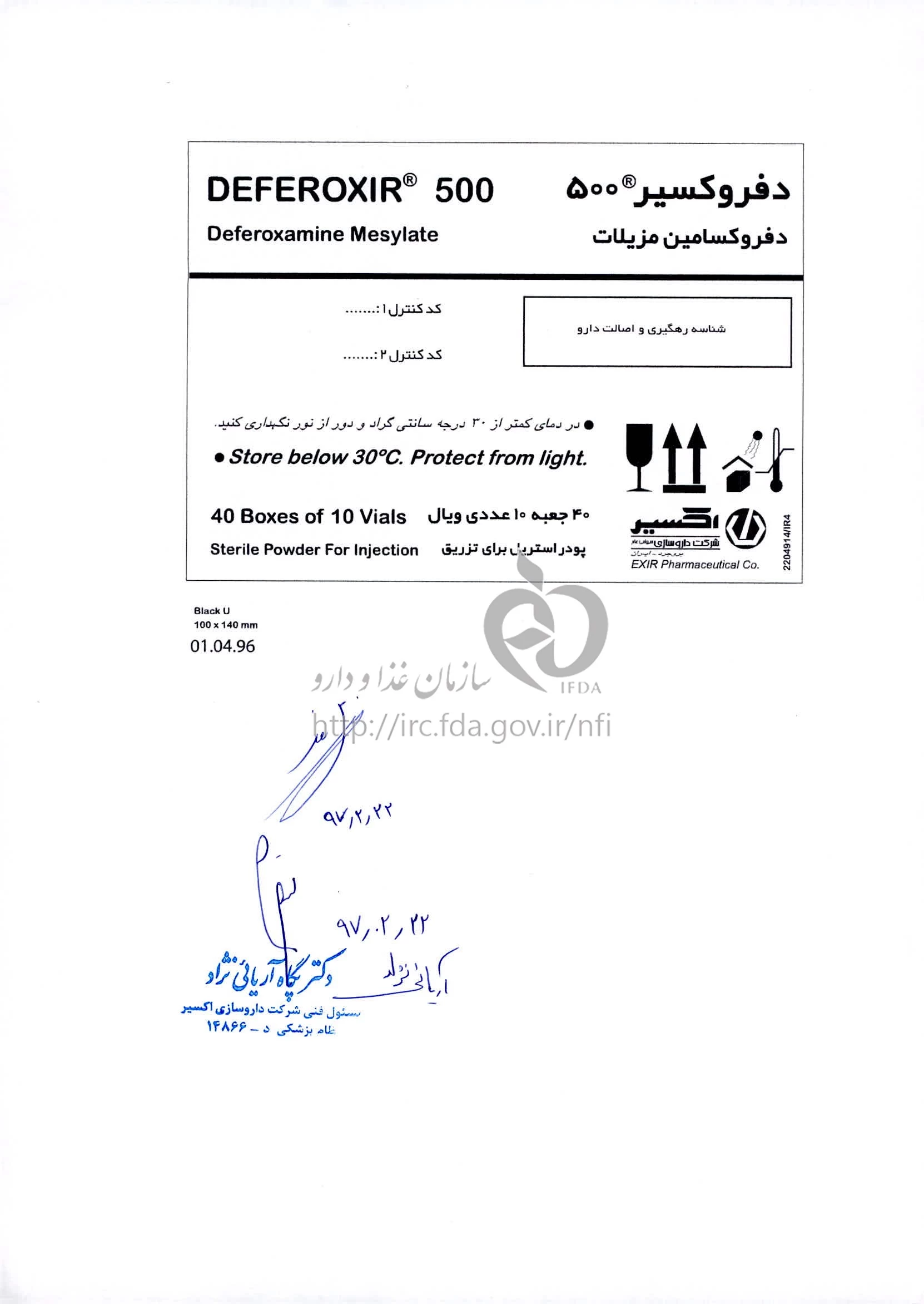 دکترها دفروکسیر پودر برای تهیه محلول تزریقی پرنترال 500 mg
