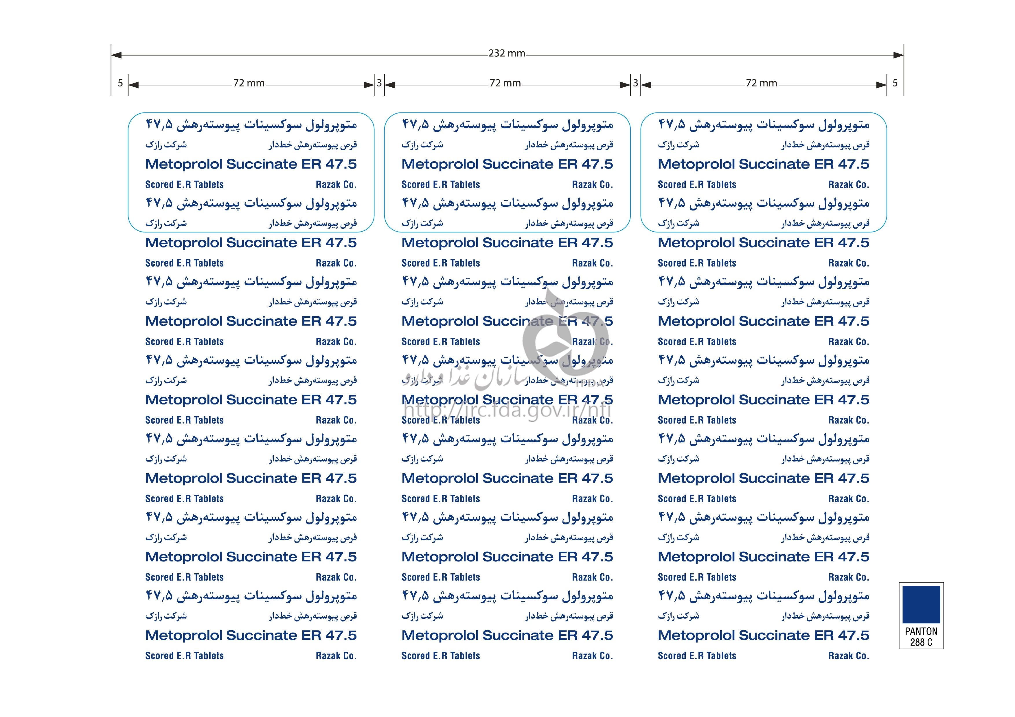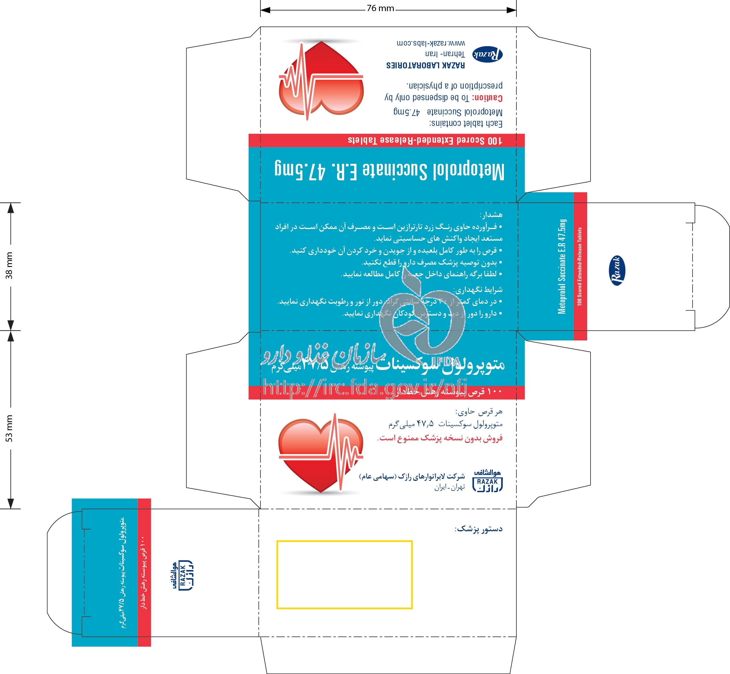 متوپرولول سوکسینات قرص پیوسته رهش خوراکی 47.5 mg