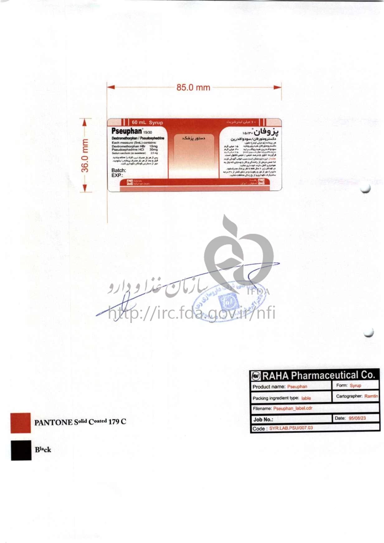 پزوفان شربت خوراکی 15 mg/30 mg/5mL