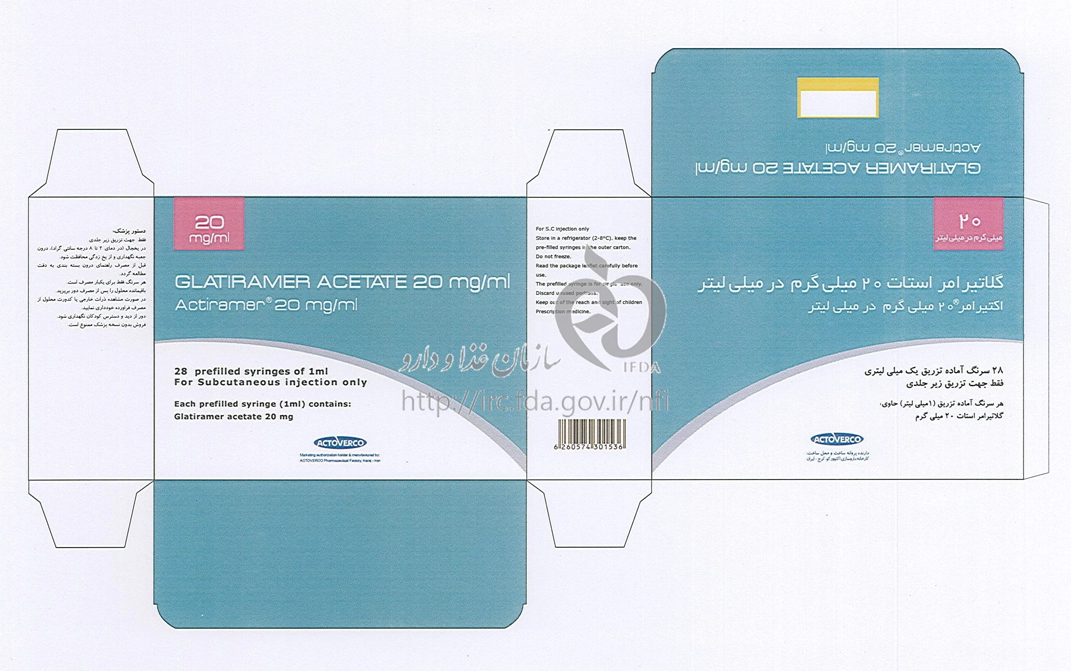اکتیرامر محلول تزریقی پرنترال 20 mg/1mL