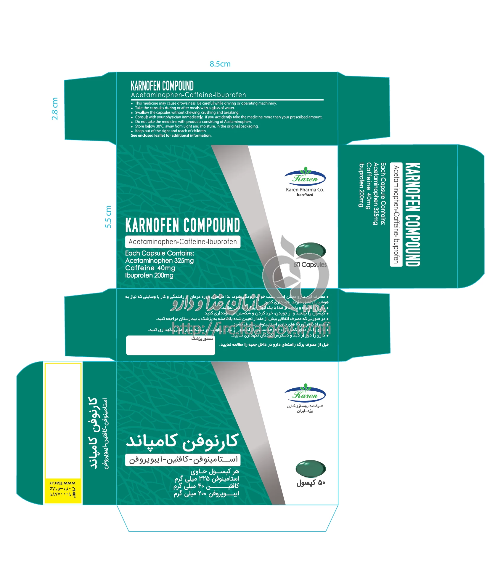 کارنوفن کامپاند کپسول خوراکی 325 mg/40 mg/200 mg