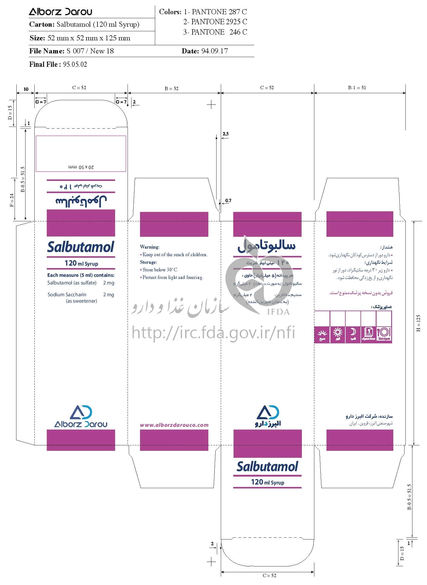 سالبوتامول شربت خوراکی 2 mg/5mL 120MILLILITER