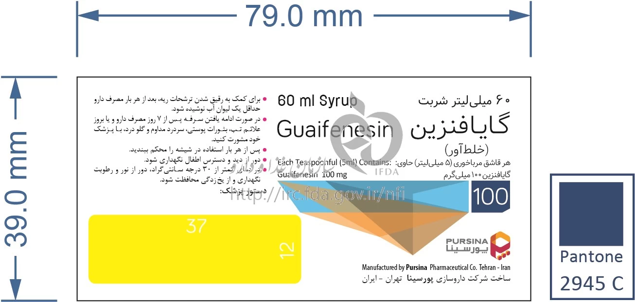گایافنزین شربت خوراکی 100 mg/5mL 60MILLILITER