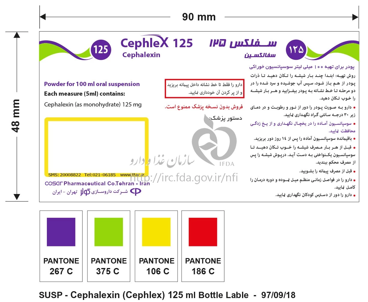 سفلکس پودر برای تهیه سوسپانسیون خوراکی 125 mg/5mL 100MILLILITER