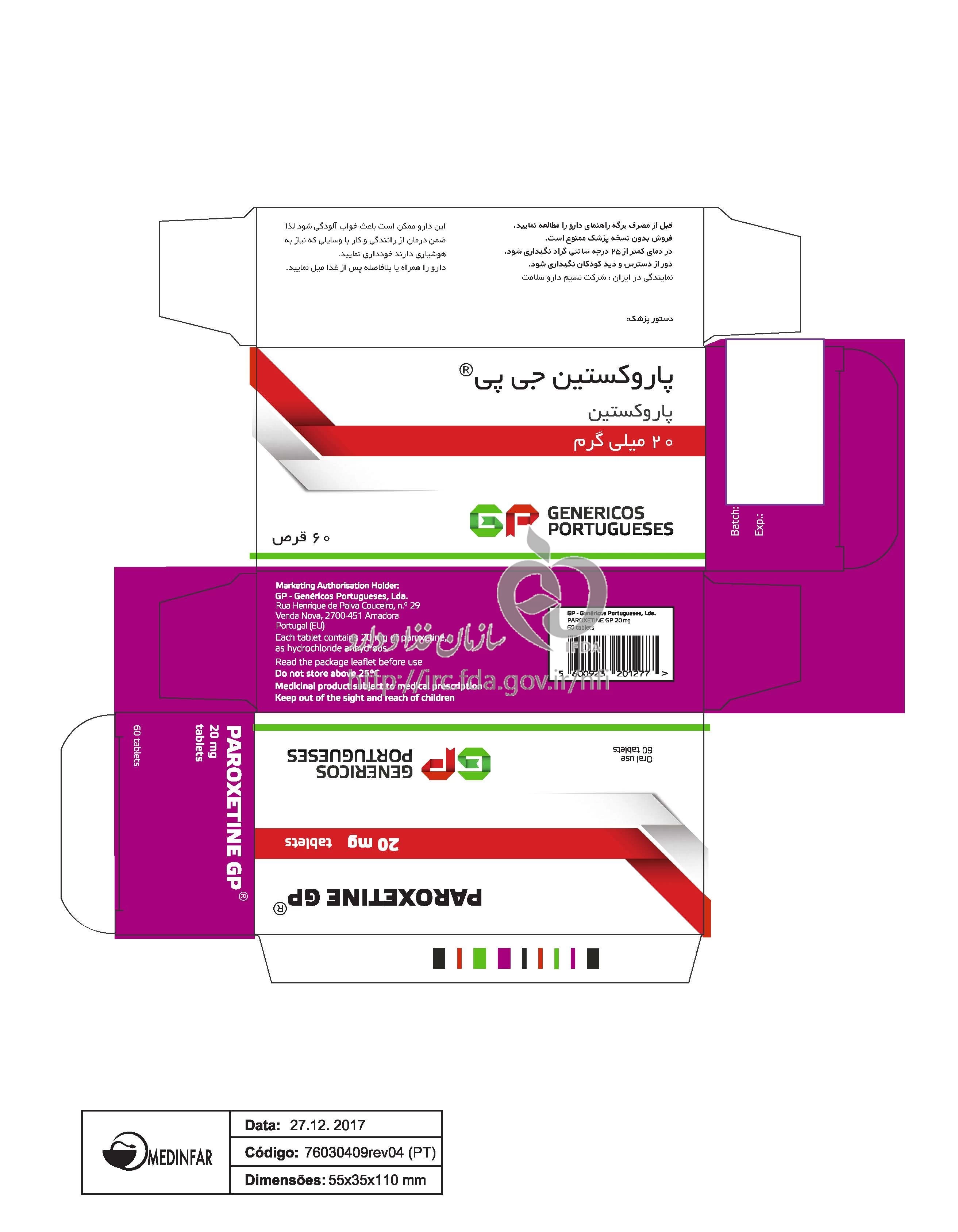 پاروکستین جی پی قرص خوراکی 20 mg