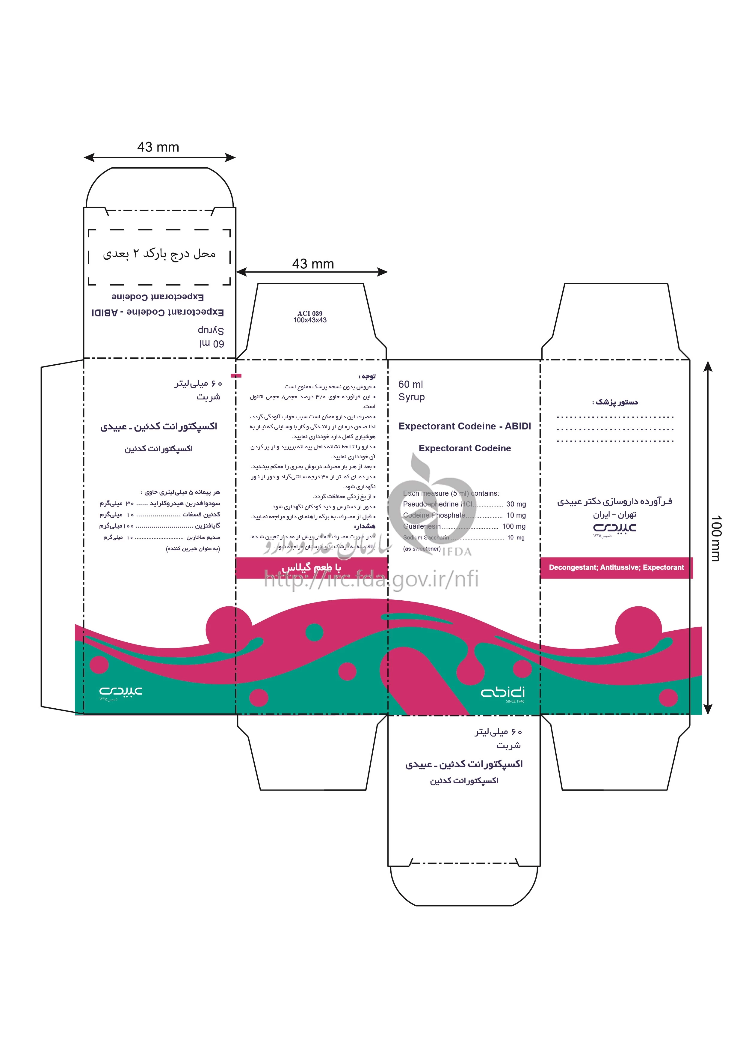 اکسپکتورانت کدئین - عبیدی شربت خوراکی 100 mg/30 mg/10 mg/5 mL 60MILLILITER