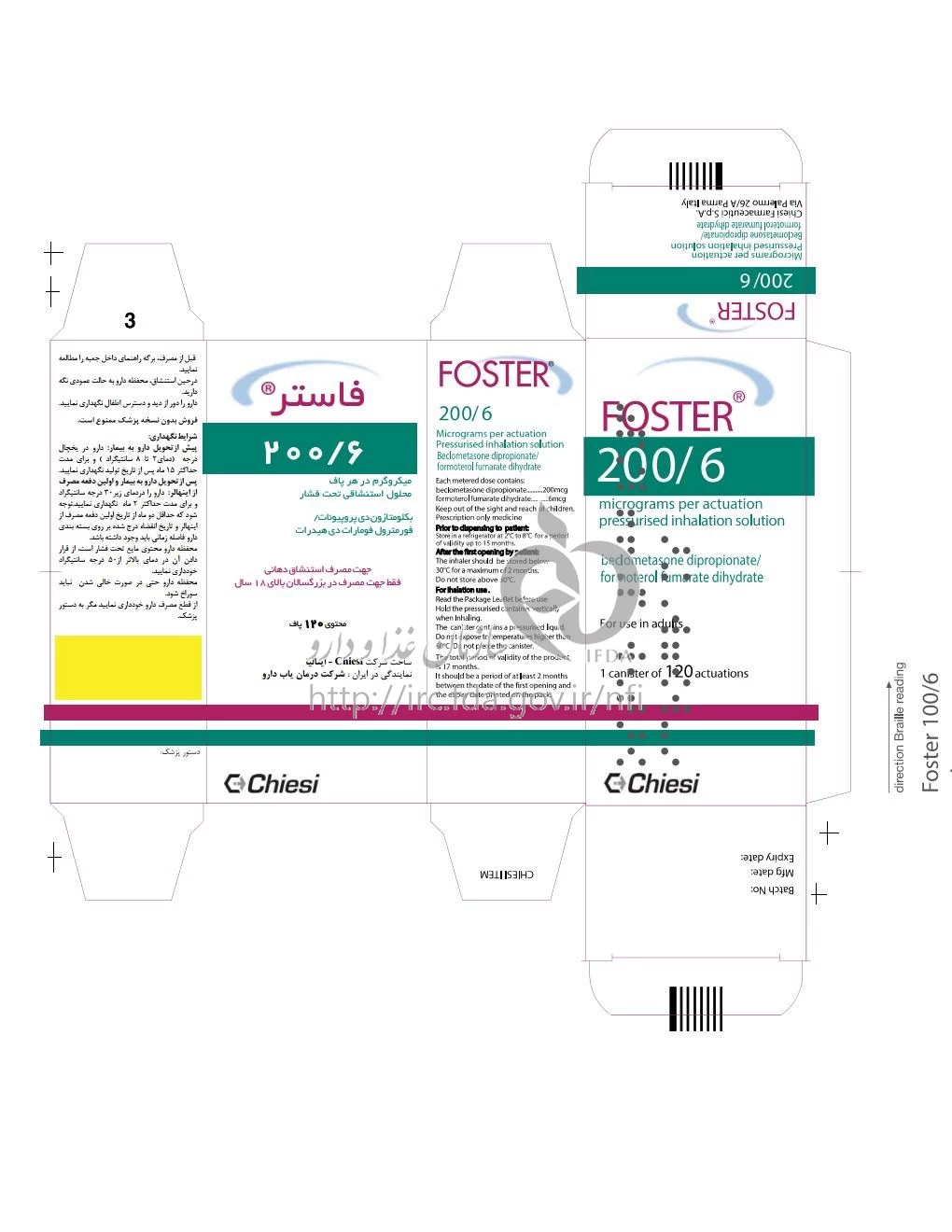 فاستر آئروسل با دوز اندازه گیری شده استنشاقی 200 ug/6 ug/1{Puff} 120PUFF
