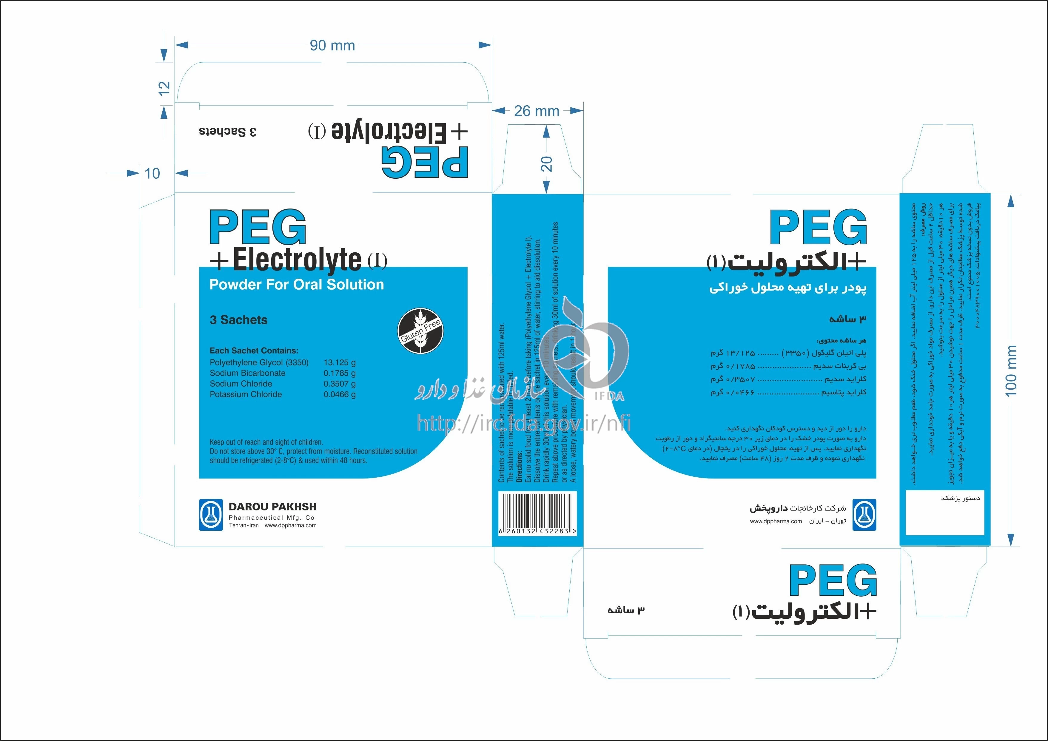 پلی اتیلن گلیکول - الکترولیت 1 پودر برای تهیه محلول خوراکی 13.125 g/0.3507 g/0.1785 g/0.0466 g 13.87GRAM