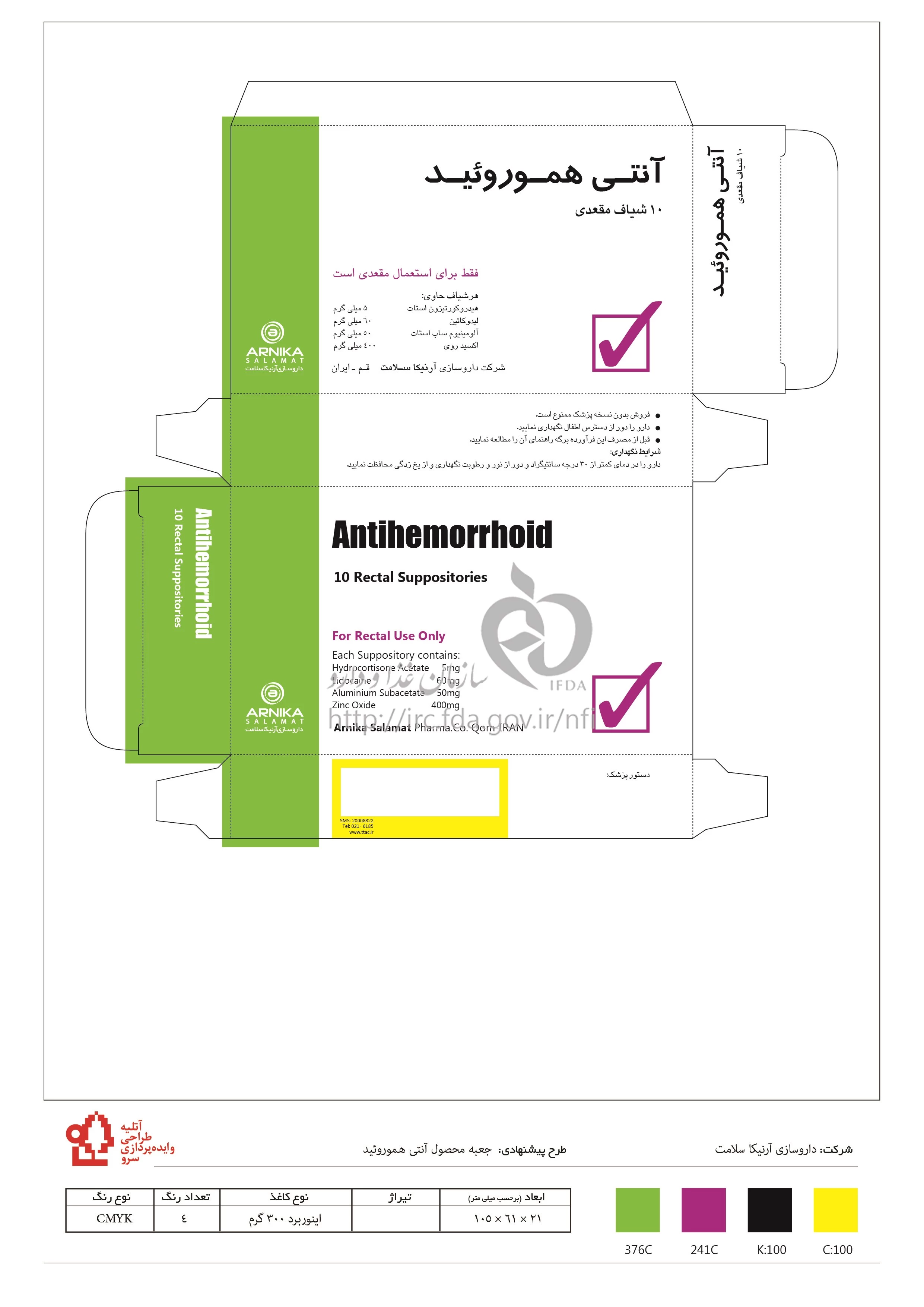 آنتی هموروئید شیاف مقعدی 60 mg/5 mg/50 mg/400 mg