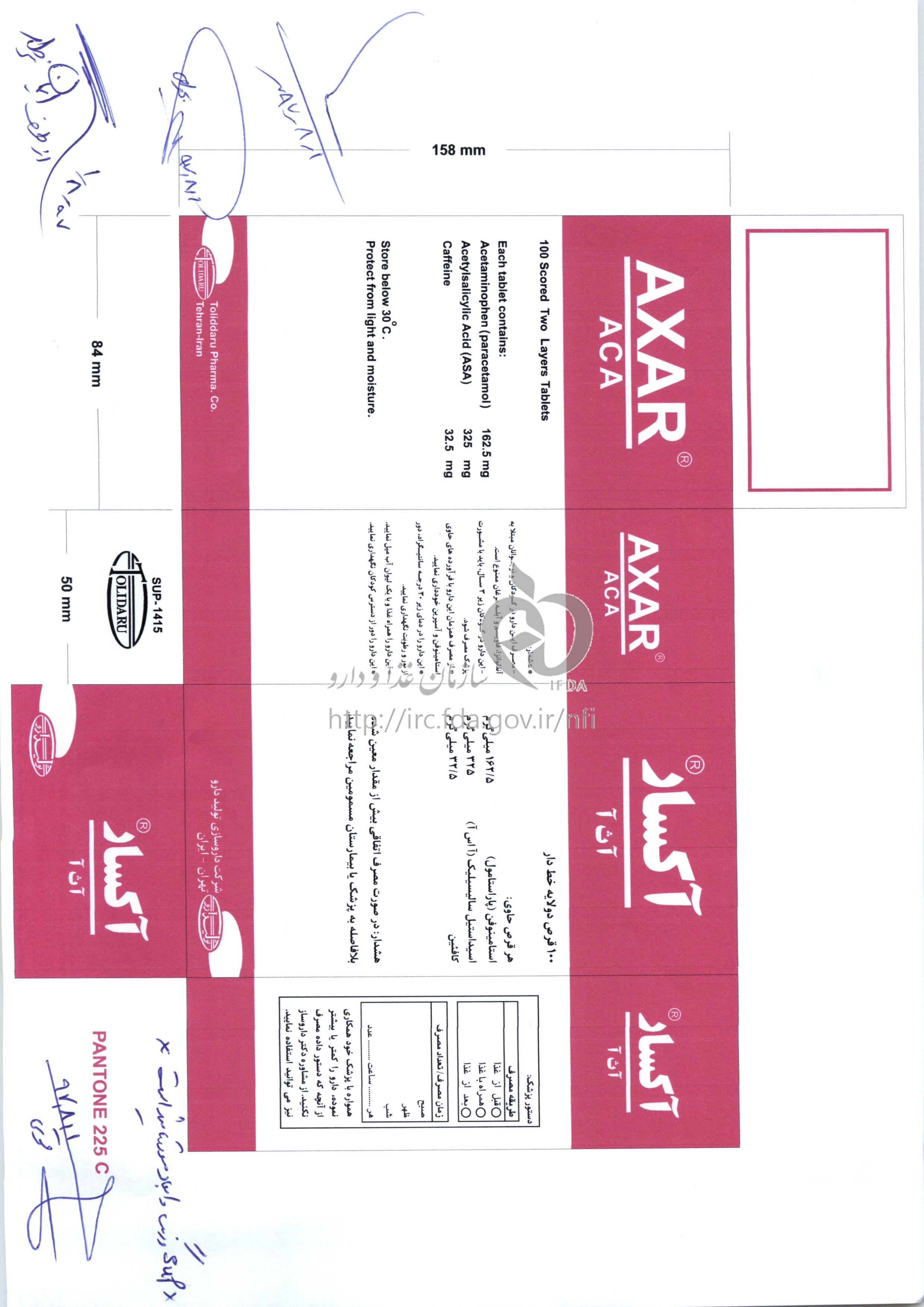موارد مصرف ، عوارض جانبی ، مصرف بارداری و تداخلات دارویی آکسار قرص خوراکی 162.5 mg/32.5 mg/325 mg