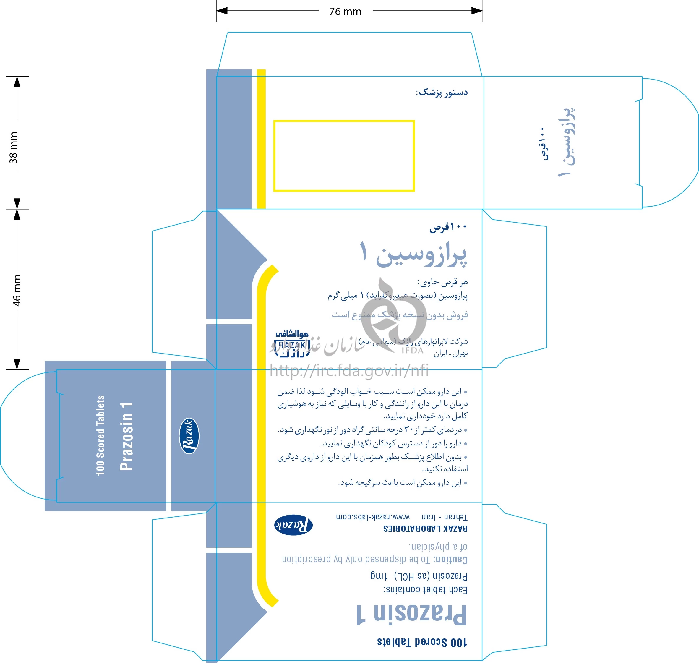 پرازوسین 1 میلی گرم قرص خوراکی 1 mg