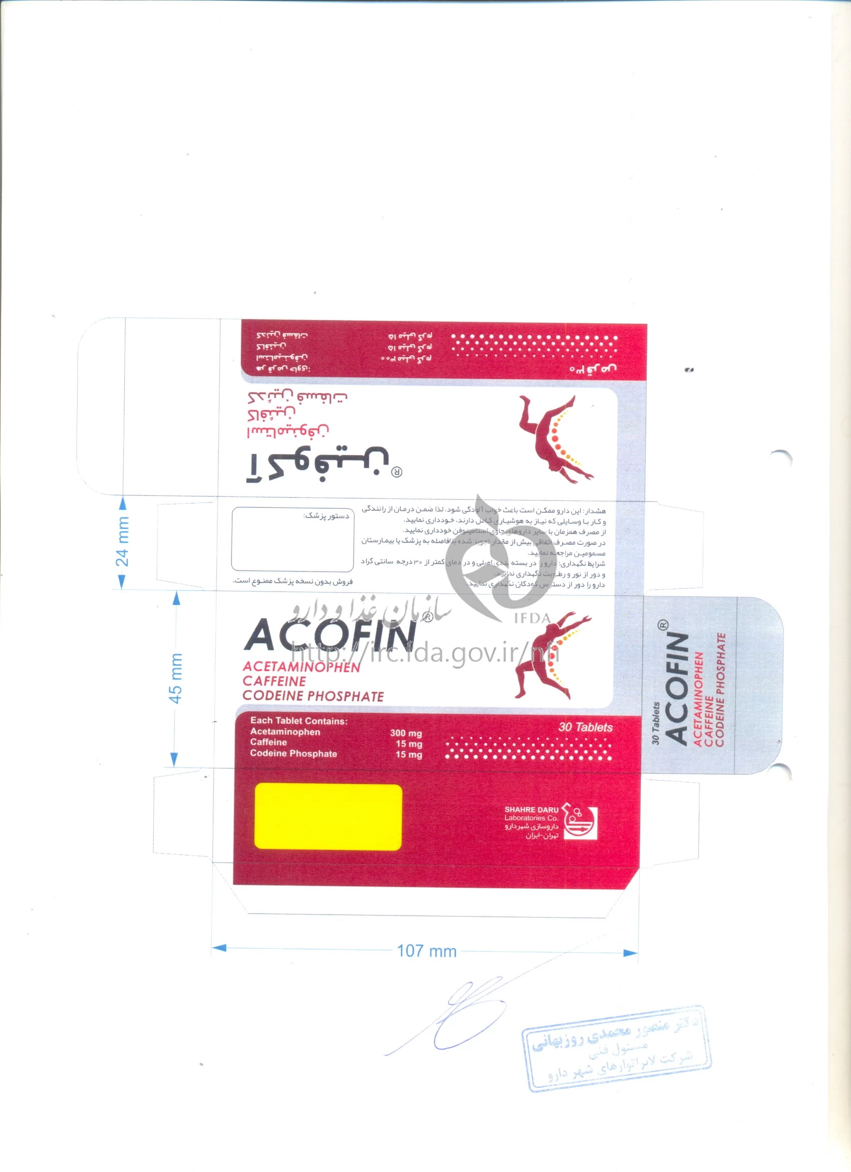 ACETAMINOPHEN / CAFFEINE / CODEINE PHOSPHATE TABLET ORAL 300 mg/15 mg/15 mg به عنوان یک دارو ترکیبی استفاده می شود که شامل آسپرین، کافئین و کدئین است. این دارو معمولا برای کاهش درد، تب و التهاب استفاده می شود. در مورد نحوه مصرف این دارو بهتر است با پزشک خود مشورت کنید، اما دستورالعمل‌‌های عمومی عبارت‌اند از: - این دارو باید به دقت طبق دستور پزشک مصرف شود. - دارو را با یک لیوان آب بصورت کامل بلعید. - جرعات به مقدار تیغه داروساز نوشته شده در بسته‌بندی حق بیمار است. - مصرف همزمان با الکل یا دیگر داروها باید با پزشک مشورت شود. - این دارو بهتر است بدون غذا مصرف شود برای بهره بردن از بهترین تاثیرات آن. باید خاطر نشان کرد که اشخاصی که دچار بیماری‌های کلیوی یا کبدی هستند یا در گذشته مشکلات تعریقی و شاقول داشته‌اند، باید با پزشک خود مشورت کنند قبل از شروع مصرف این دارو. همچنین استفاده از این دارو باعث خواب‌آلودگی و مسمومیت می‌شود و نباید با دیگر داروها ترکیب شود.