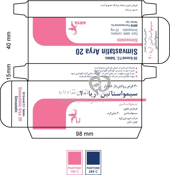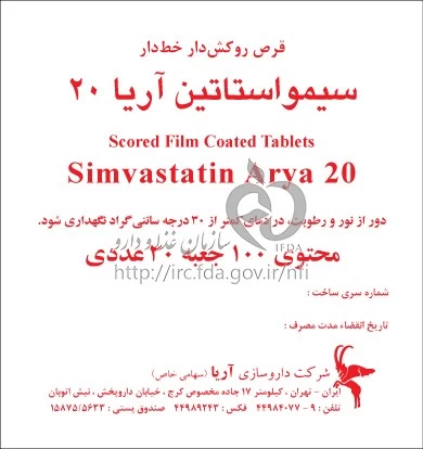 سیمواستاتین آریا قرص خوراکی 20 mg