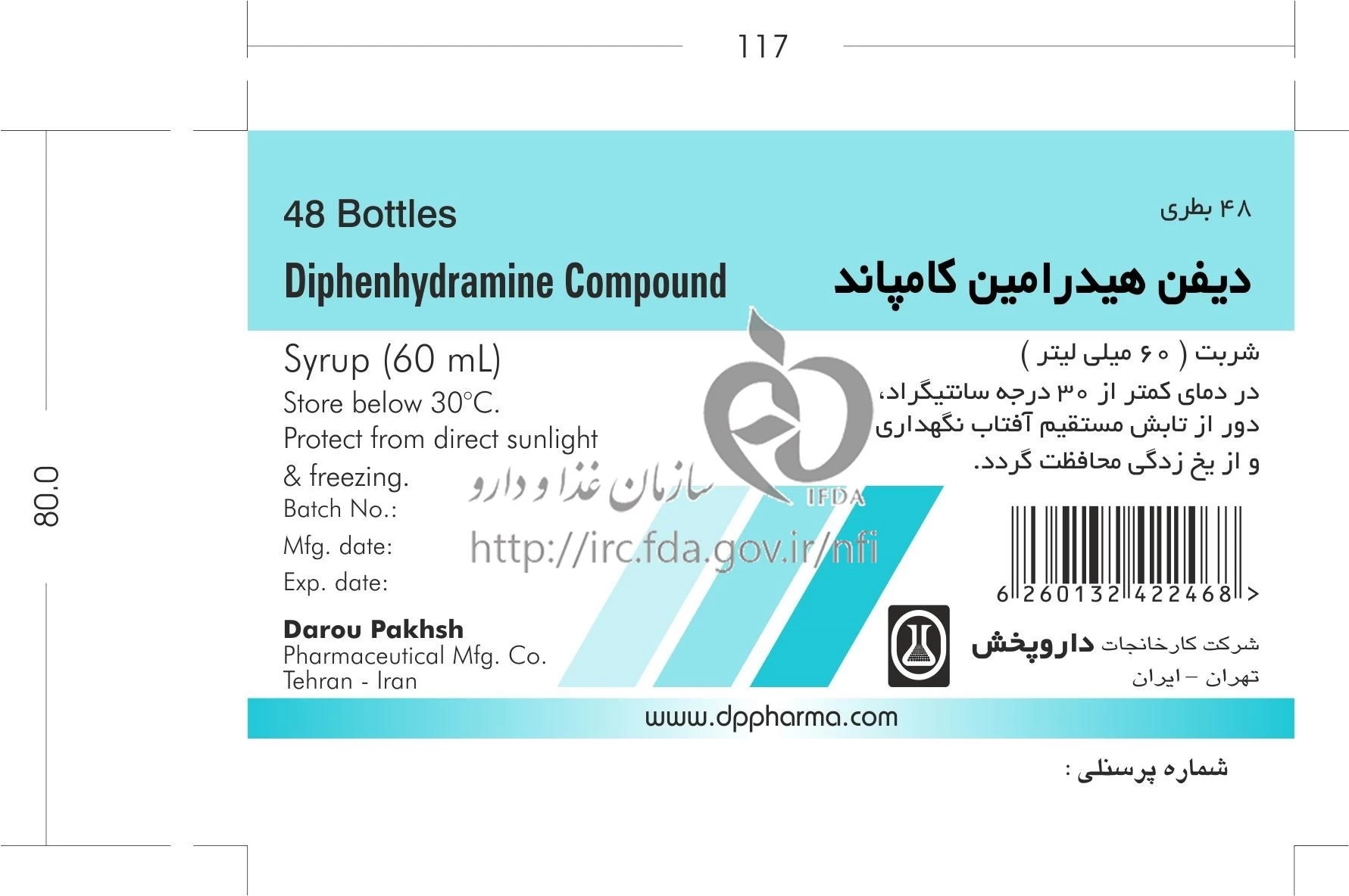دیفن هیدرامین کامپاند شربت خوراکی 12.5 mg/125 mg/5mL 60MILLILITER