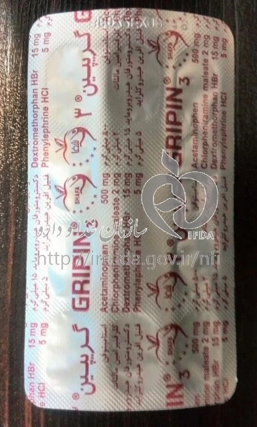 گریپین قرص خوراکی 15 mg/2 mg/5 mg/500 mg