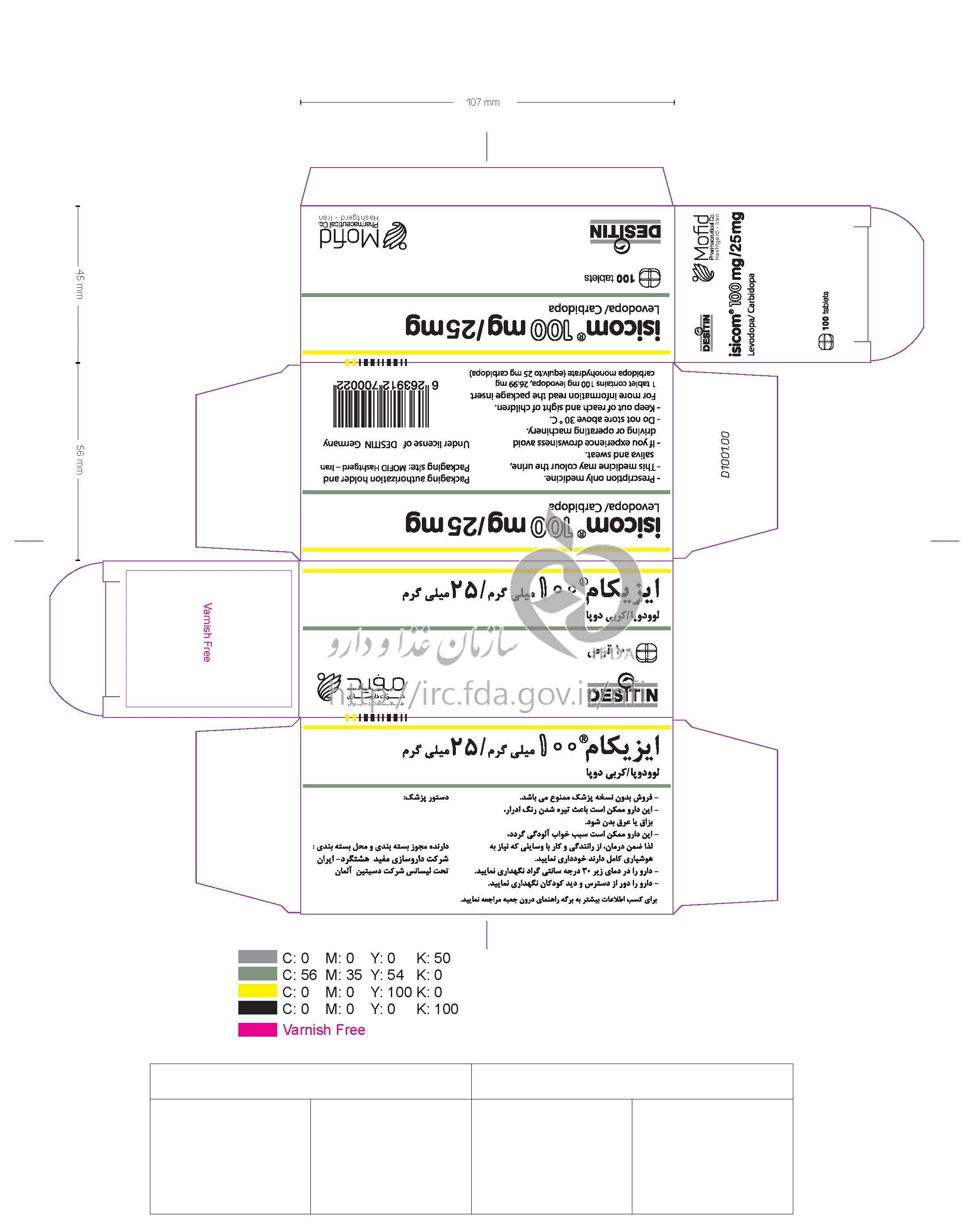 LEVODOPA / CARBIDOPA TABLET ORAL 100 mg/25 mg یک داروی دستهی داروهای ضد پارکینسون است که استفاده آن برای کنترل علائم بیماری پارکینسون مفید است. این دارو با کاهش سطح دوپامین در مغز موجب تسکین علائم بیماری پارکینسون میشود. نحوه مصرف این دارو به شکل زیر است: - جرعه اولیه: دو قرص در روز، هر قرص دارای 100 میلی گرم لوودوپا + 25 میلی گرم کاربیدوپا است. - جرعهی مداوم: میتوان هر ۳ تا ۴ ساعت یک قرص مصرف کرد، اما معمولاً پزشکان تجویز میکنند که در ابتدا به دو قرص در روز برسید و سپس به طور مداوم تجویز شده را مصرف نمایید. مصرف این دارو بصورت دوره ای است و باید ترکیبی با داروهای دیگر به نام آنتی کولینرژیک و ماده دهندهی دوپامین باشد. قبل از مصرف این دارو حتما با پزشک خود صحبت کرده و دستورهای وی را رعایت کنید.