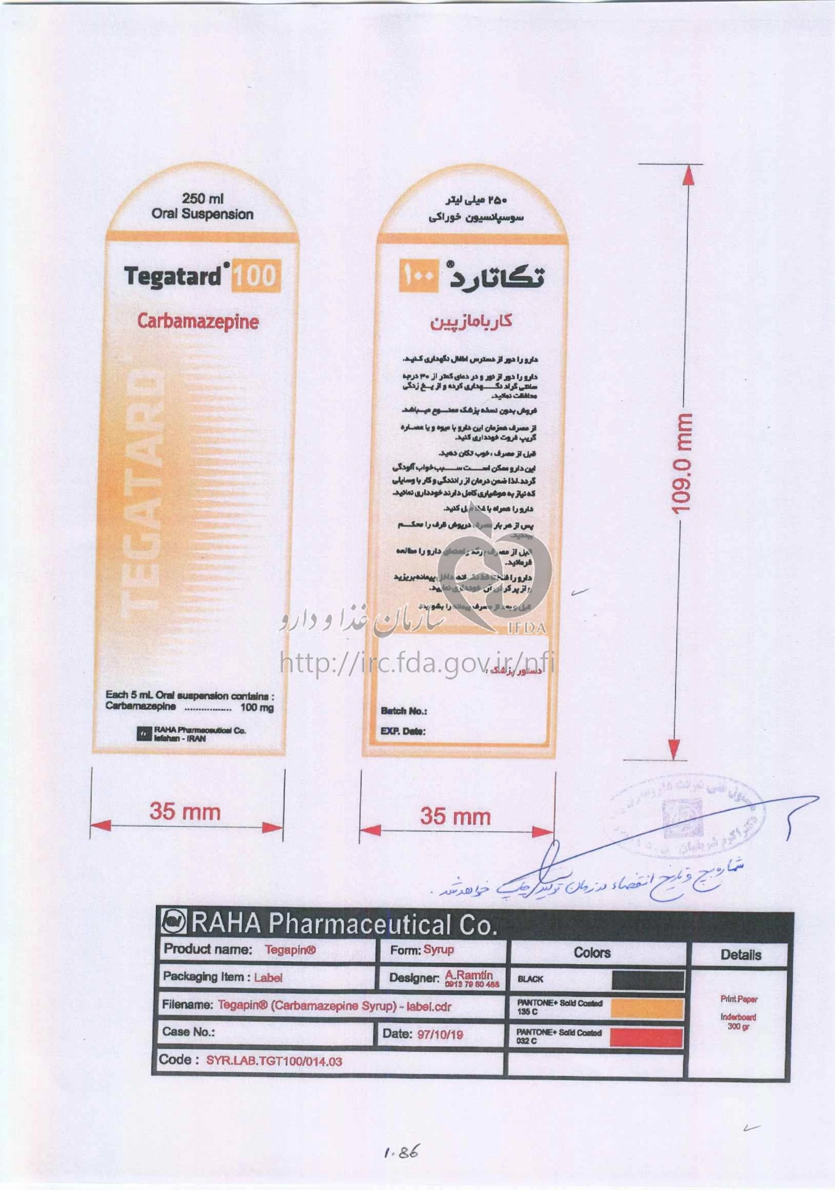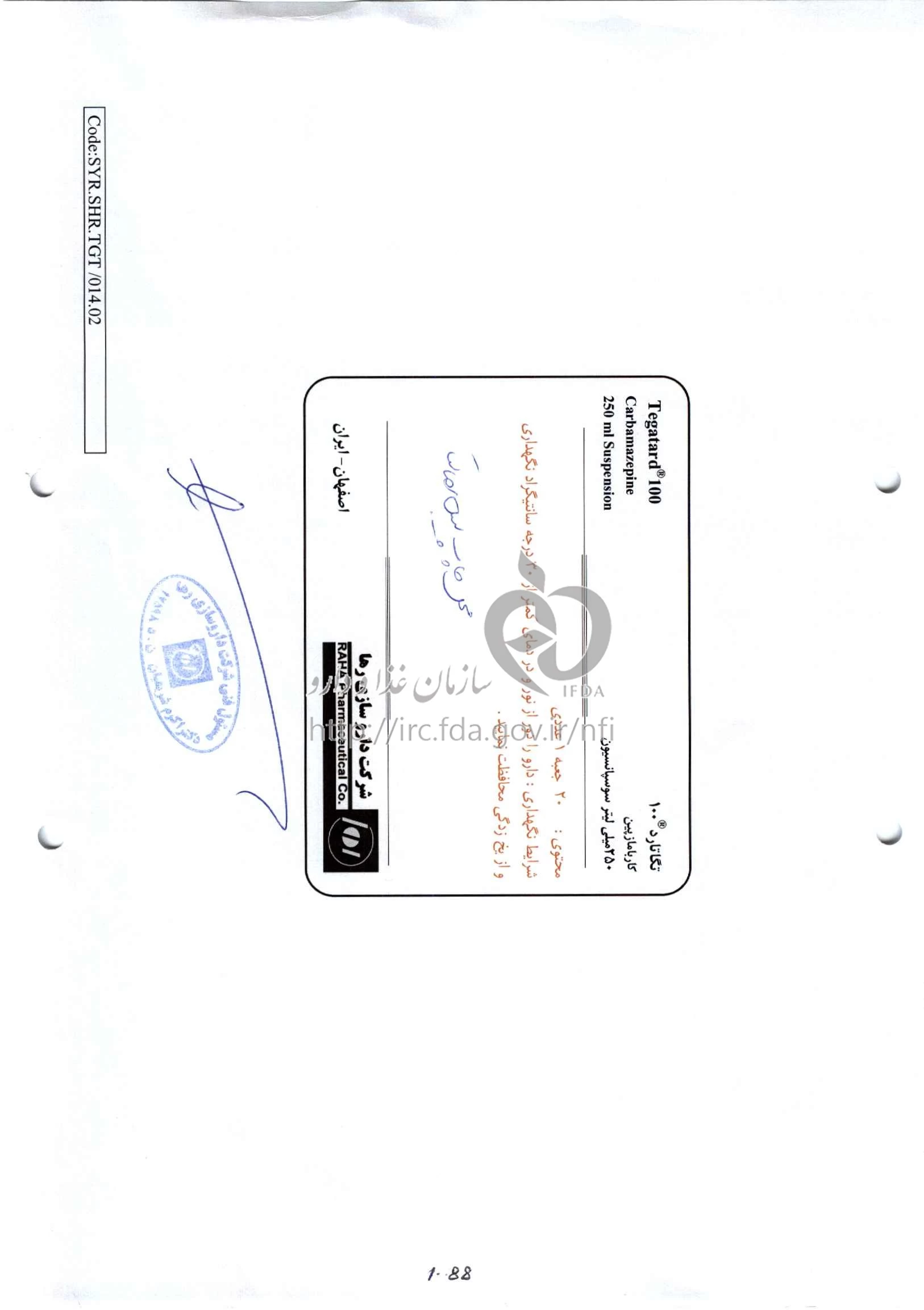 تگاتارد سوسپانسیون خوراکی 100 mg/5mL 250MILLILITER