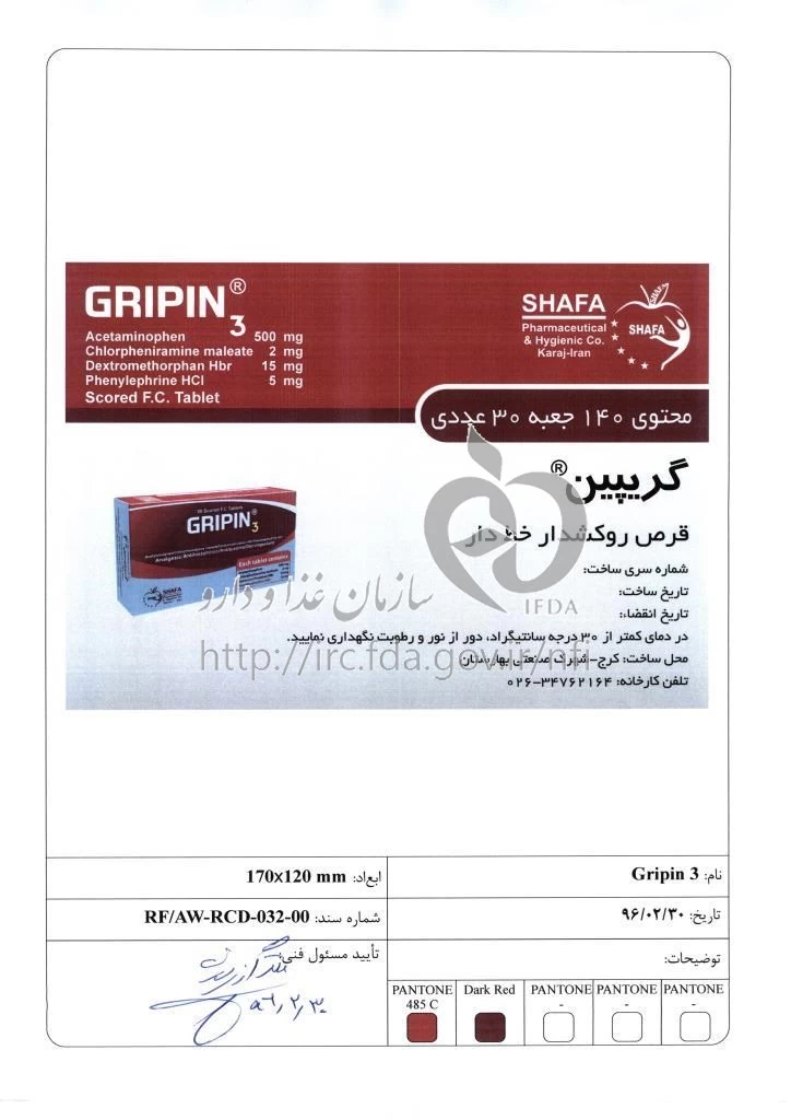گریپین قرص خوراکی 15 mg/2 mg/5 mg/500 mg