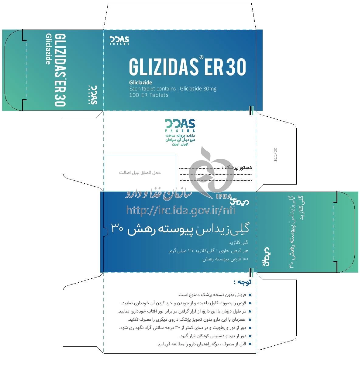 گلی زیداس قرص پیوسته رهش خوراکی 30 mg