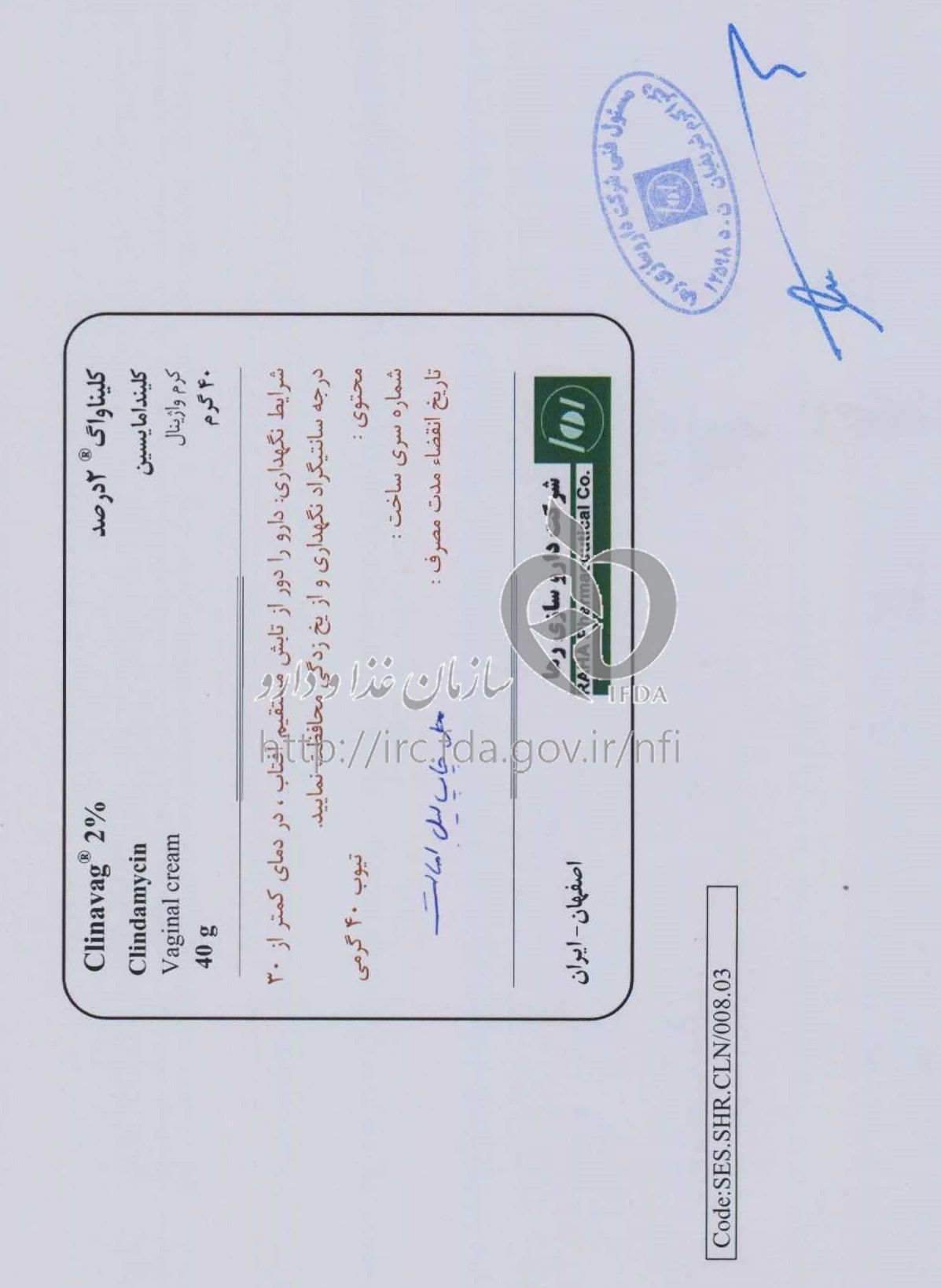 كليناواگ کرم واژینال 2 % 40GRAM