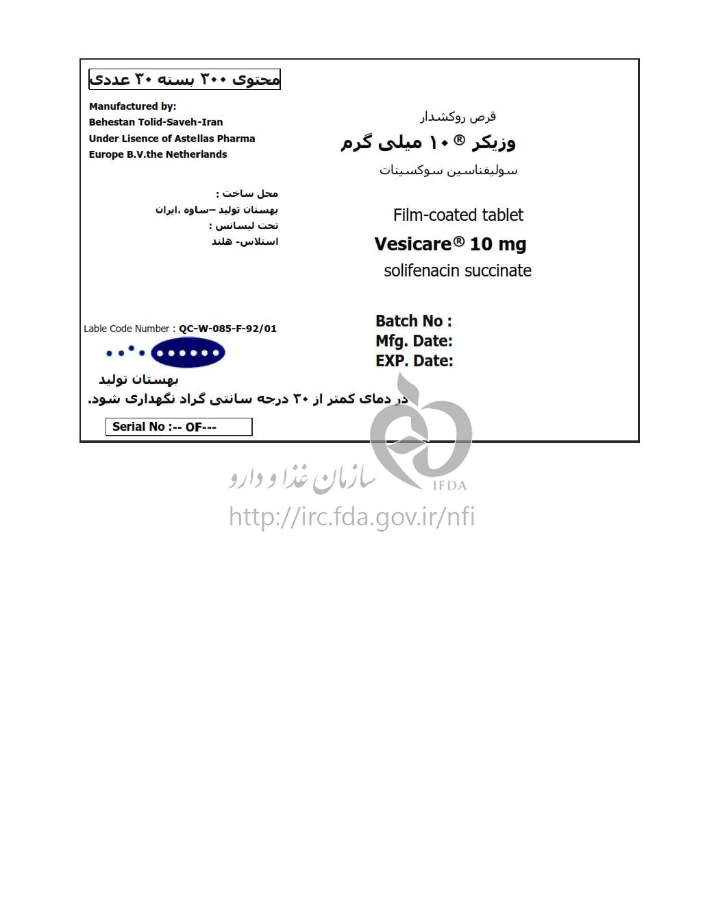 نکات قابل توصیه وزیکر قرص خوراکی 10 mg