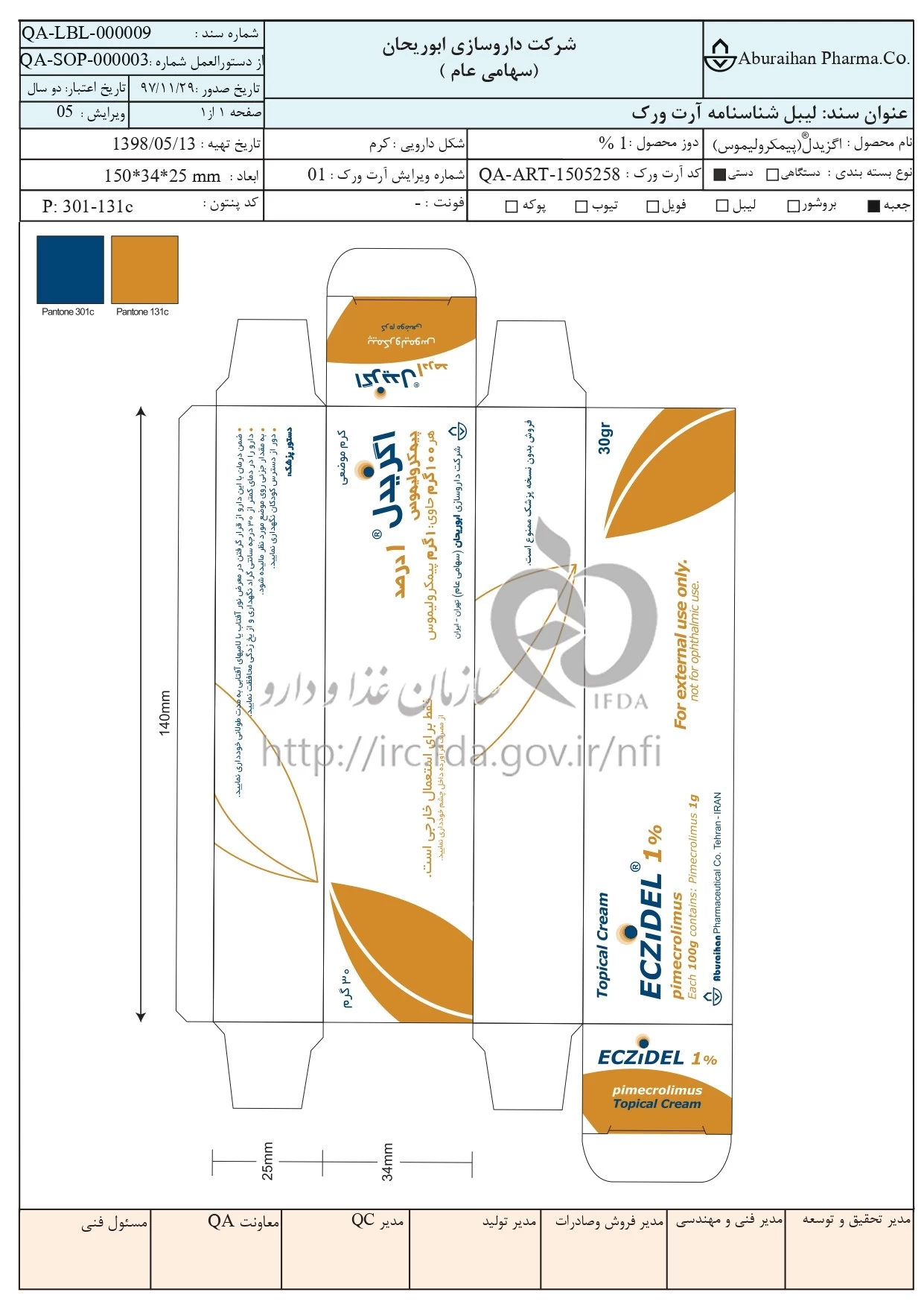نکات قابل توصیه اگزیدل کرم موضعی 1 % 30GRAM