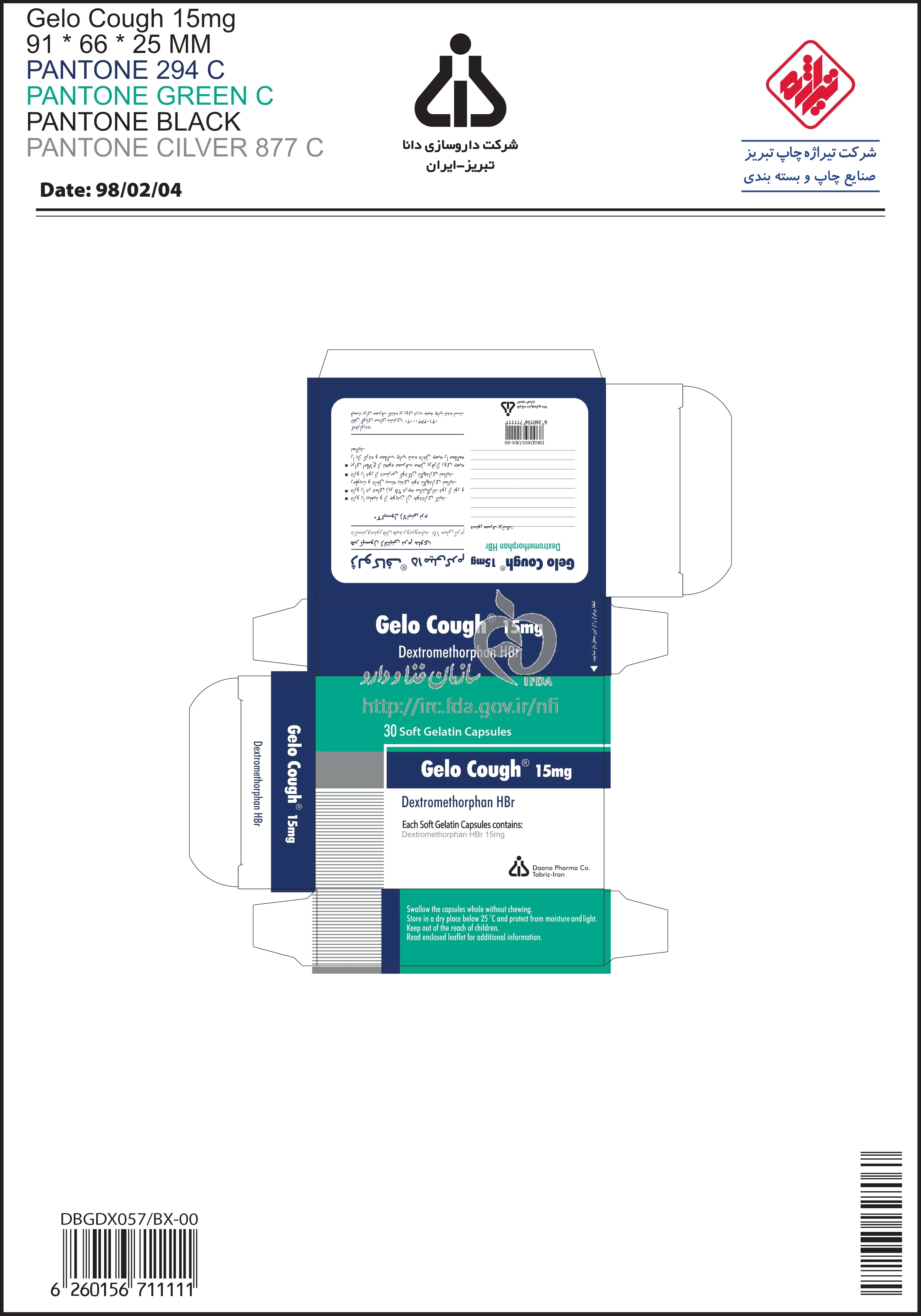 ژلوکاف کپسول حاوی مایع خوراکی 15 mg