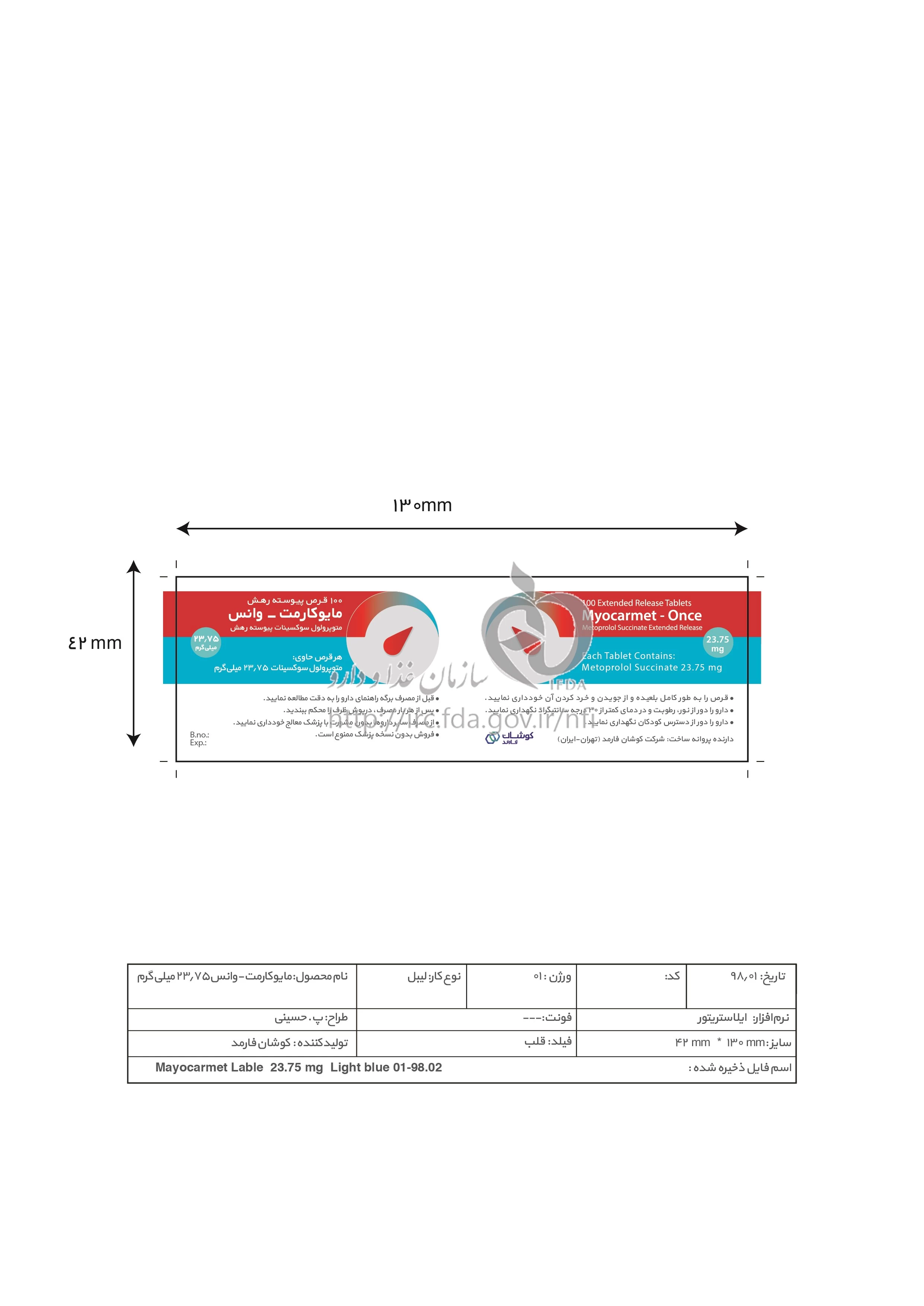 مایوکارمت - وانس قرص پیوسته رهش خوراکی 23.75 mg
