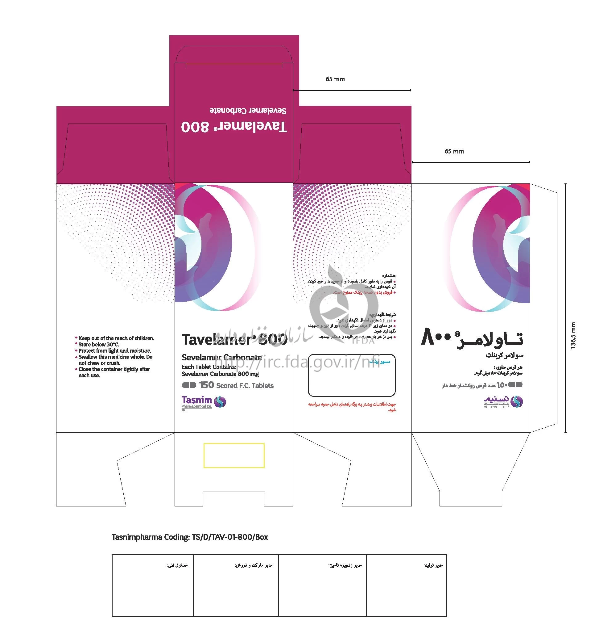 تداخل های دارویی تاولامر قرص خوراکی 800 mg