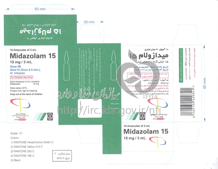 میدازولام تزریقی پرنترال 5 mg/1mL 3MILLILITER