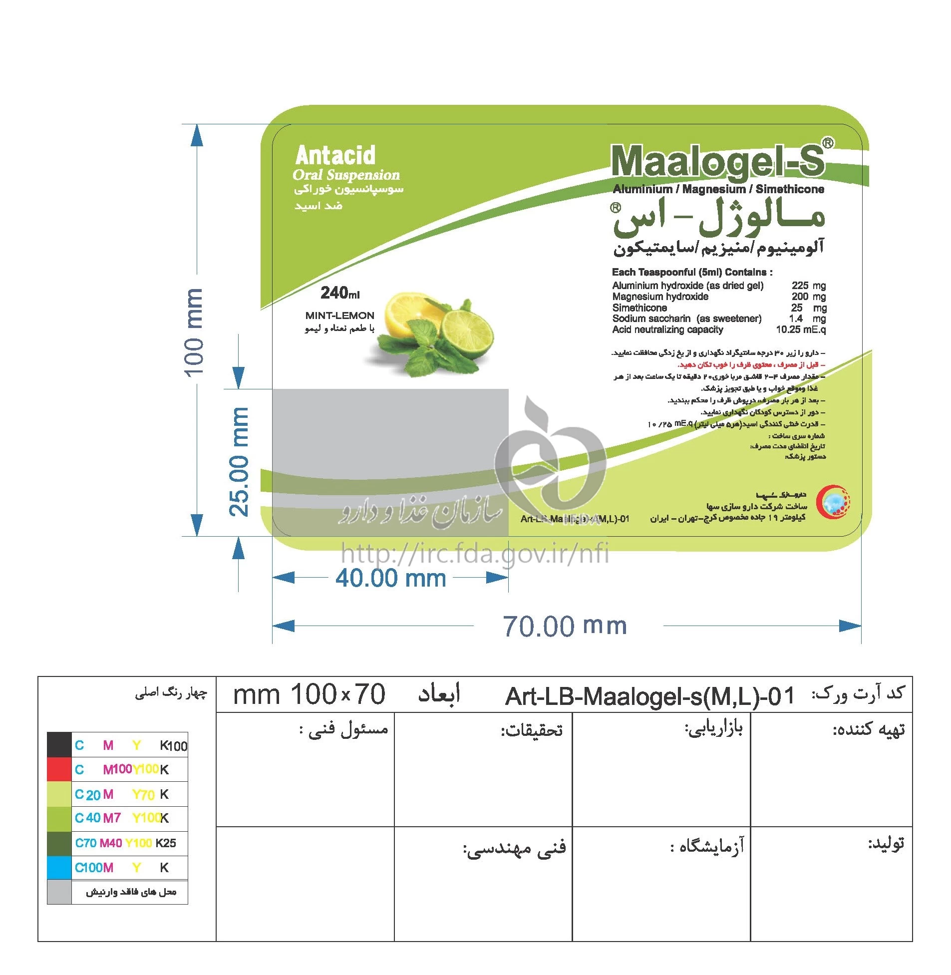 مالوژل - اس سوسپانسیون خوراکی 225 mg/200 mg/25 mg/5mL 240MILLILITER