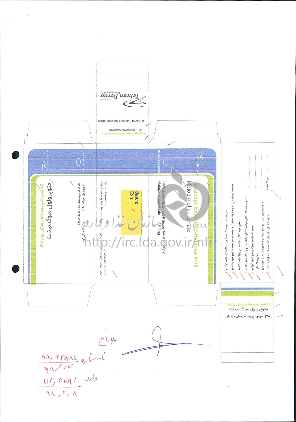 تداسپت قرص پیوسته رهش خوراکی 47.5 mg