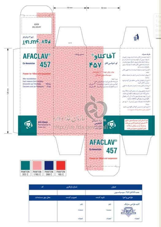 آفاکلاو پودر برای تهیه سوسپانسیون خوراکی 400 mg/57 mg/5 mL 100MILLILITER