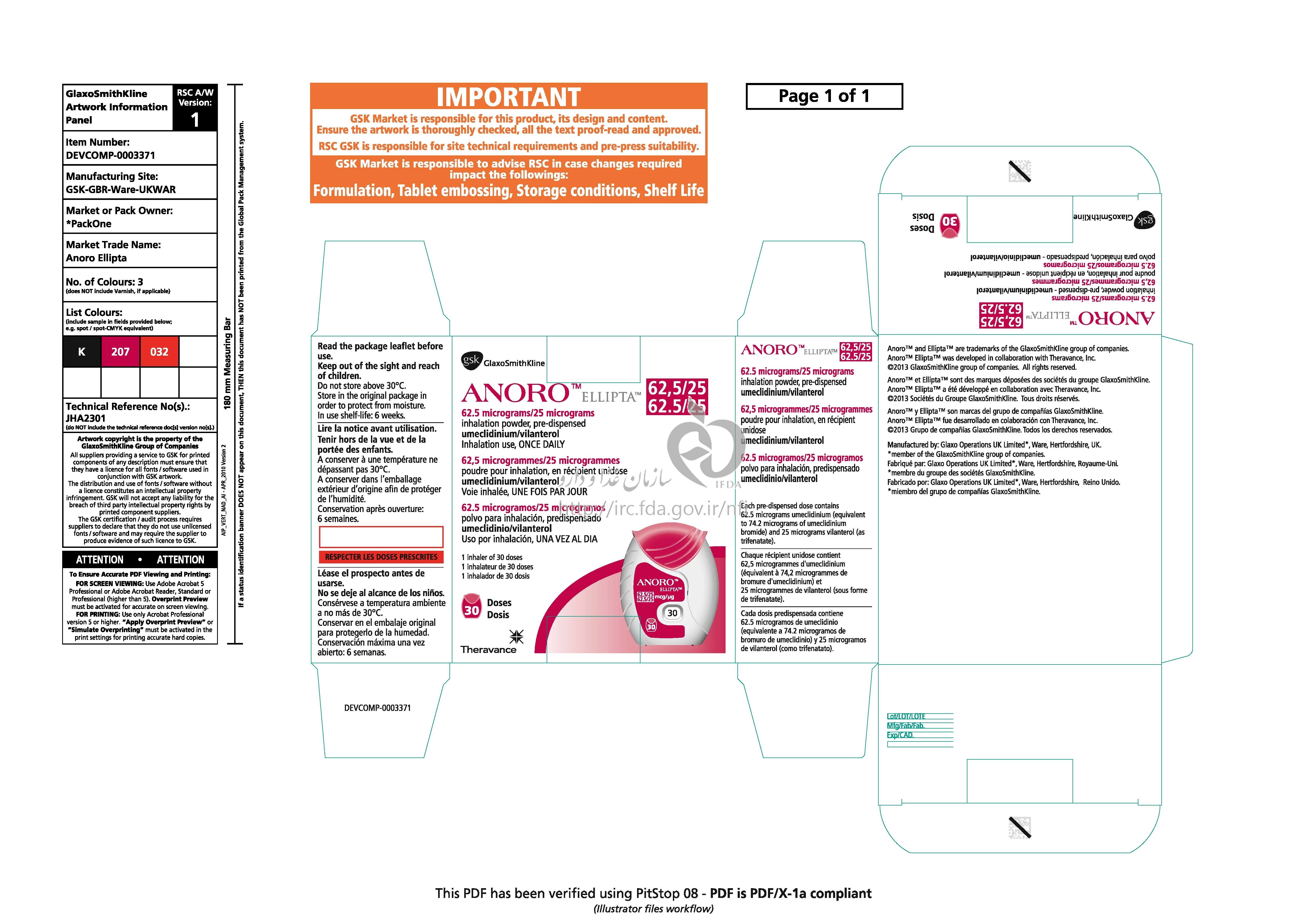 UMECLIDINIUM (AS BROMIDE) / VILANTEROL (AS TRIFENATATE) POWDER RESPIRATORY 62.5 ug/25 ug/1{Puff}