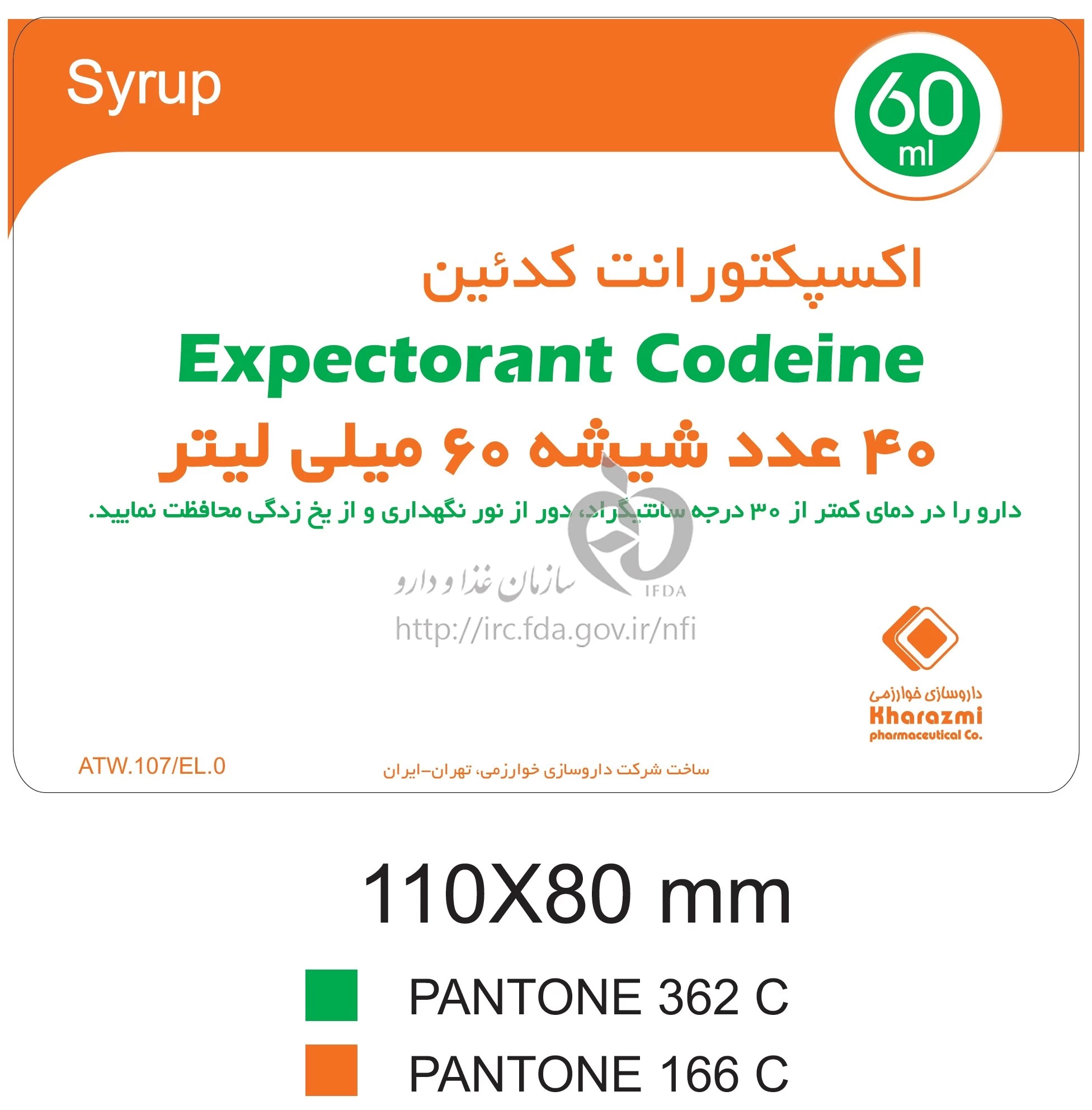 اکسپکتورانت کدئین - خوارزمی شربت خوراکی 100 mg/30 mg/10 mg/5 mL 60MILLILITER