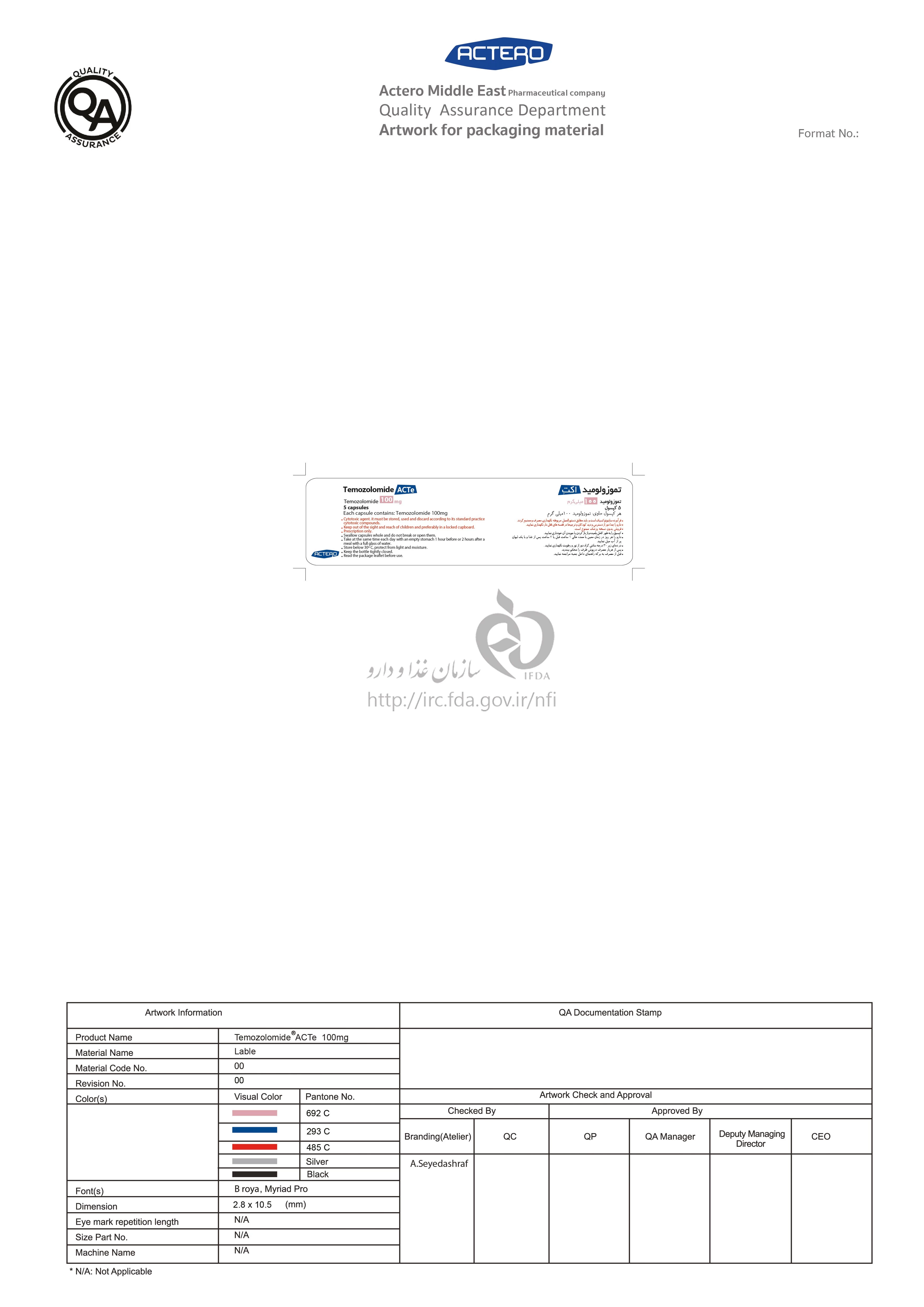 تموزولومید اکتِ کپسول خوراکی 100 mg