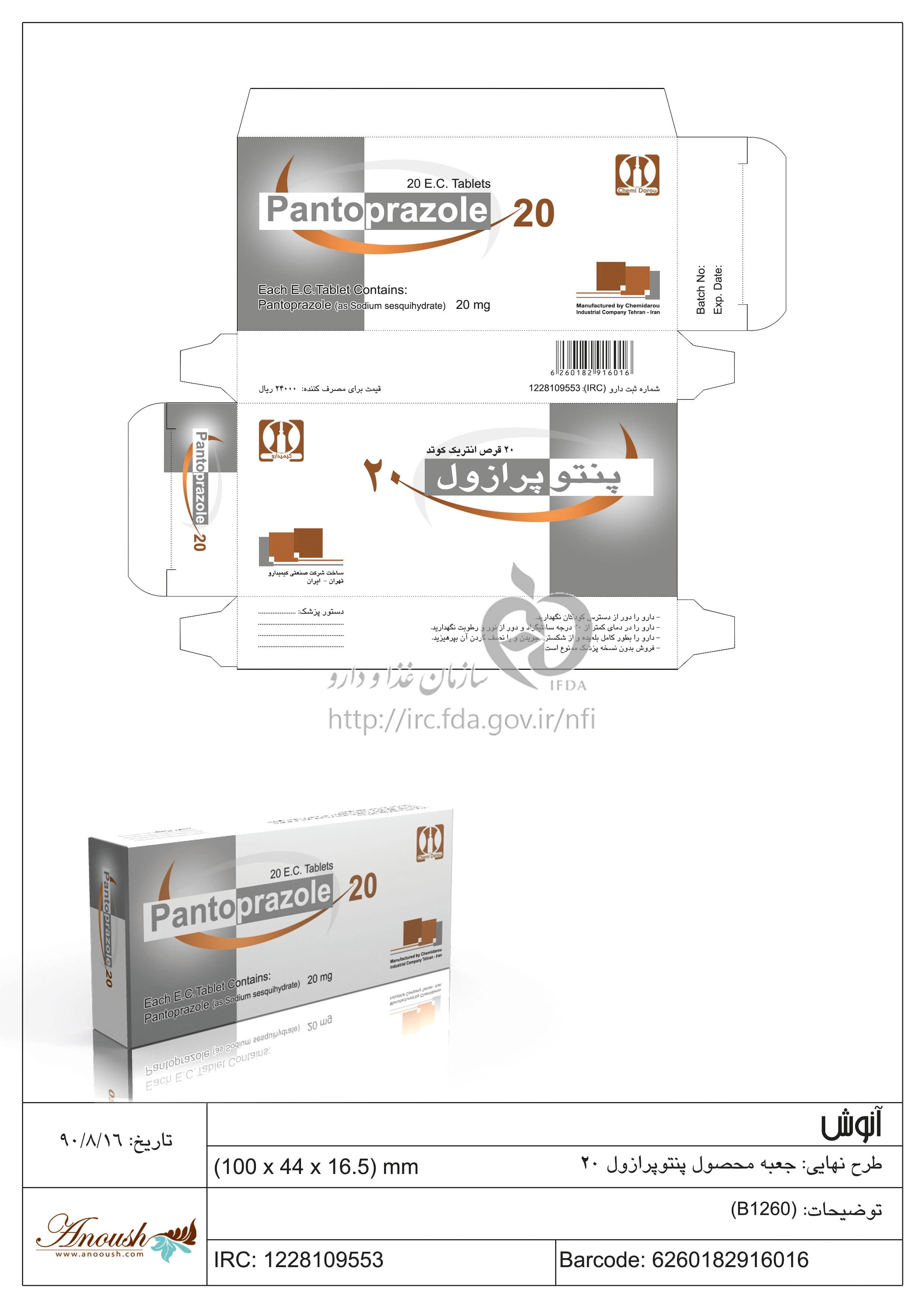PANTOPRAZOLE TABLET, DELAYED RELEASE ORAL 20 mg یک داروی ضد اسید معده است که برای درمان مشکلات معده مانند سوء هاضمه، قرحه معده، بیماری برتولت و رفلاکس معده به کار میرود. نحوه مصرف این دارو معمولاً یک قرص در روز به صورت خالی از معده یا در همان زمانی که غذا میخورید، مصرف میشود. توصیه میشود که قبل از مصرف این دارو، دستورالعملهای پزشک خود را به دقت بخوانید و در صورت بروز هرگونه عارضه، پزشک خود را مطلع کنید.