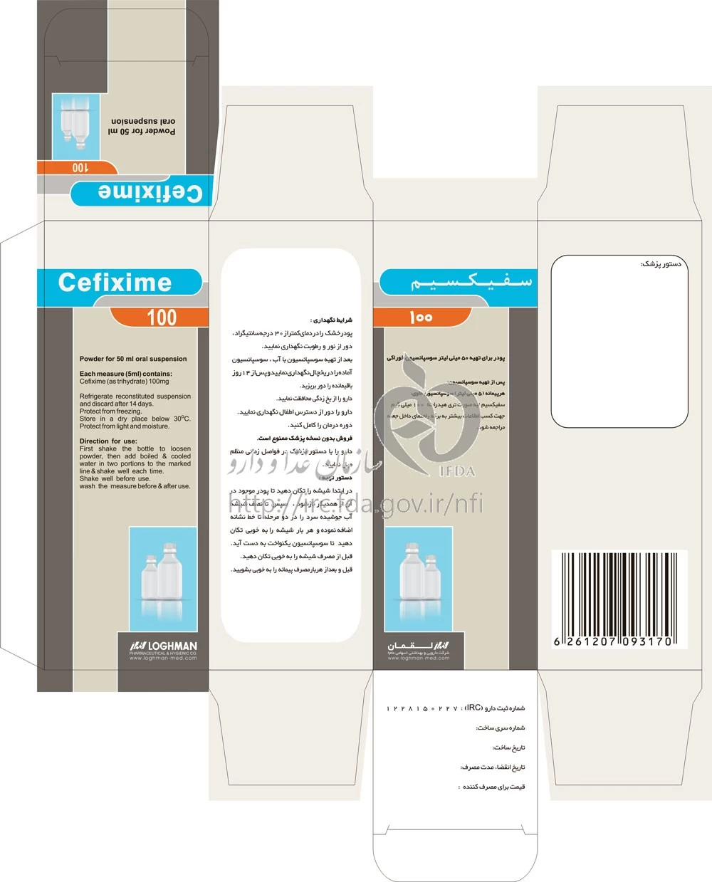 داروی CEFIXIME POWDER, FOR SUSPENSION ORAL 100 mg/5 mL 50MILLILITER یک آنتی‌بیوتیک از کلاس سفالوسپرین‌ها است که برای درمان عفونت‌های باکتریایی از جمله عفونت‌های دستگاه تنفسی، عفونت‌های ادراری و گوش استفاده می‌شود. نحوه مصرف دارو باید بر اساس دستور پزشک باشد، اما معمولاً جرعه استاندارد برای بزرگسالان ۲۰۰ میلی‌گرم در روز به‌صورت یکبار در روز یا به‌صورت ۱۰۰ میلی‌گرم دوبار در روز است. جرعه‌ی دقیق و مدت زمان مصرف دارو باید توسط پزشک تعیین شود و باید از مصرف دارو در دوران بارداری و شیردهی خودداری شود. همچنین، قبل از شروع مصرف دارو باید از وضعیت حساسیت به دارو یا مشکلات گوارشی مانند عفونت روده و دیسفنکسیون معده به پزشک خود اطلاع داده شود.