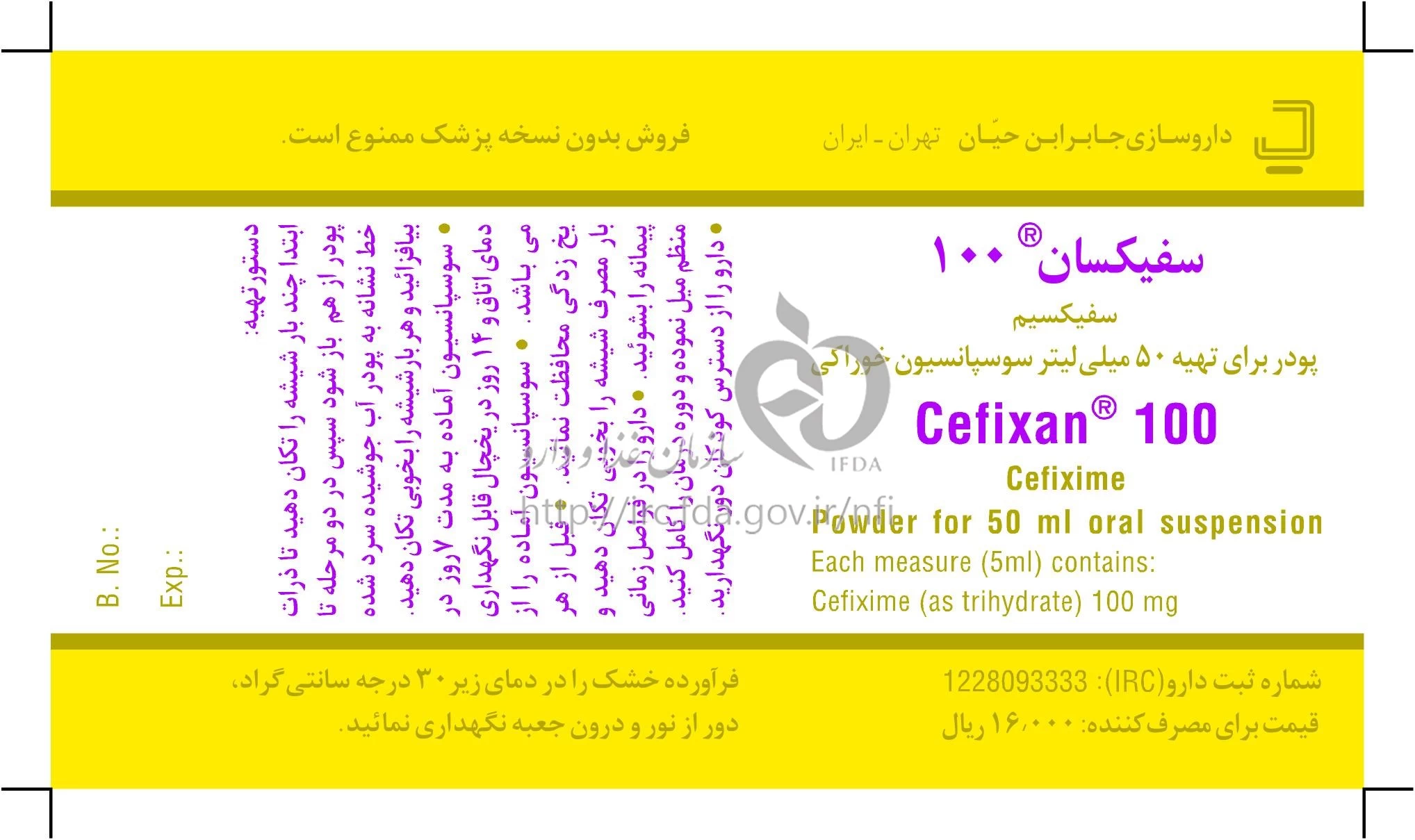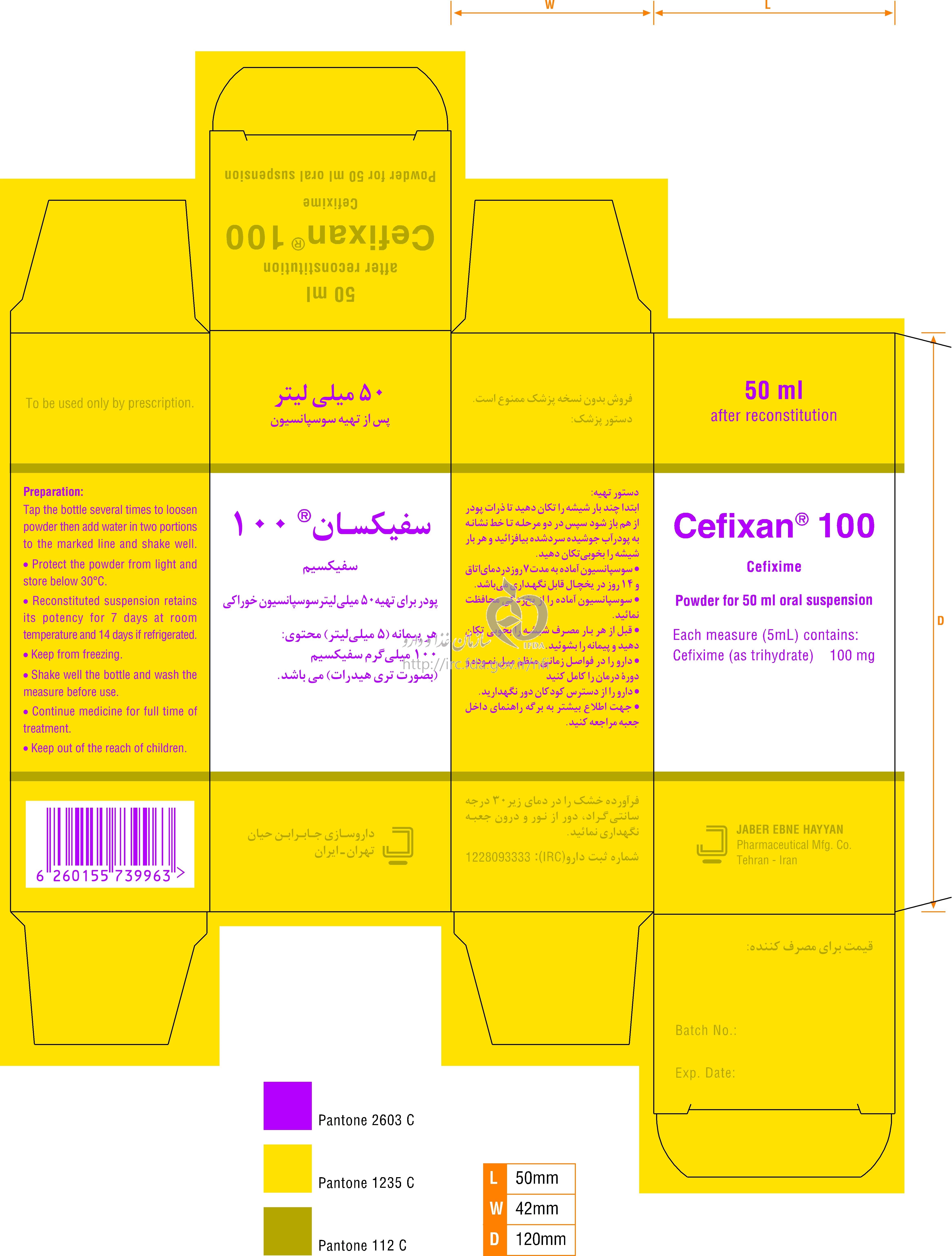 سفیکسان پودر برای تهیه سوسپانسیون خوراکی 100 mg/5 mL 50MILLILITER