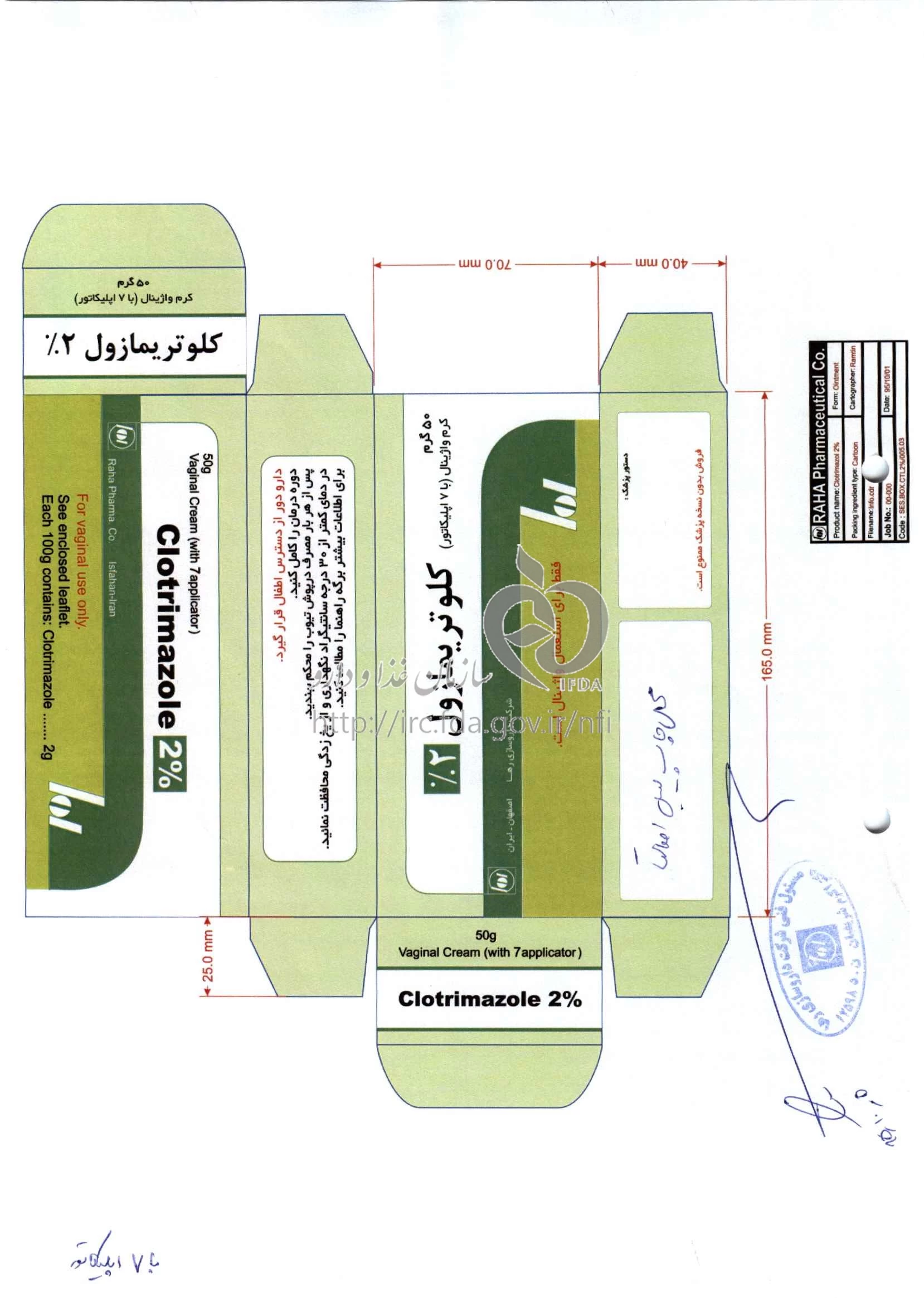 کلوتریمازول کرم واژینال 2 % 50GRAM